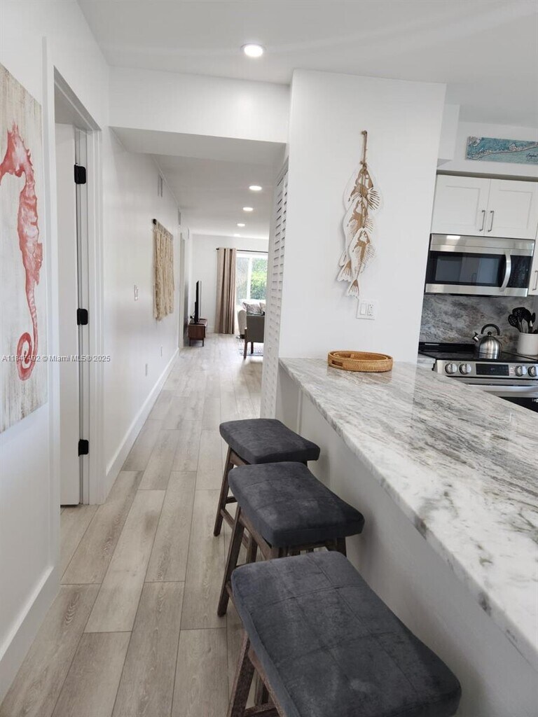 This fully renovated apartment is a sunlit, open-concept retreat with nearly every detail refreshed in 2024. The kitchen boasts custom cabinetry, quartz countertops, and a Frigidaire Gallery appliances. The second room with two beds is perfect for guests. Flooring in light wood runs throughout, and hurricane-impact floor and windows offer peace of mind. The community offers 800 feet of bayfront, heated pool, tennis courts, fully furnished. SHORT TERM MIN. 1 MONTH - SEASONAL RENT 2026 JAN, FEB or MARCH $ 5900