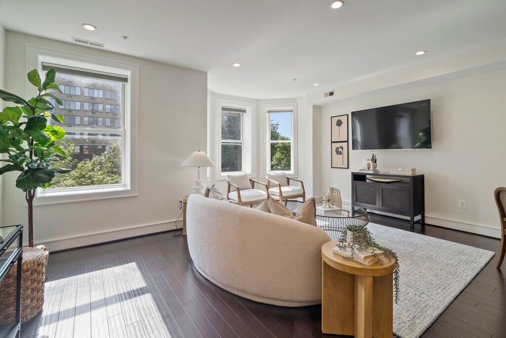 ***Look and Lease Special - $1000 off first month's rent when you tour and apply within 24 hours!*** Step into modern sophistication at 3321 16th St NW #205; a renovated 1 Bedroom + oversized Den, 2 Bath residence nestled in a boutique 6-unit building between Mount Pleasant and Columbia Heights. With 1,096 square feet of beautifully designed interior space, this condo offers refined finishes, flexible living options, and a location that defines DC convenience. The open-concept living and dining area is flooded with natural light through oversized bay windows, creating an airy, welcoming space for entertaining or relaxing. Dark wide-plank hardwoods ground the home in warmth, while the gourmet kitchen steals the show with its 9-foot waterfall-edge quartz island, two-tone cabinetry, mosaic backsplash, pendant lighting, and KitchenAid stainless steel appliances, including a gas range. Down the hall, the primary bedroom offers peaceful views and ample closet space, while the oversized den is large enough to serve as a full bedroom, home office, or creative retreat. Two full bathrooms ensure comfort and privacy for all. Just one block from Metro, Target, Giant, and local parks, this condo places you at the center of city life without sacrificing serenity. Come experience timeless style in the heart of the city. Street parking available with nearby rental garage options. The security deposit is equal to one month’s rent. Tenants are responsible for covering gas, electric, and internet. Dog/cat are okay. The application fee is $50 per applicant. At Adonis Property Management, we proudly welcome all applicants, including those using rental housing assistance through the local or federal programs.
