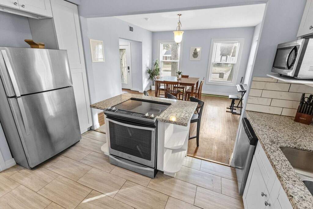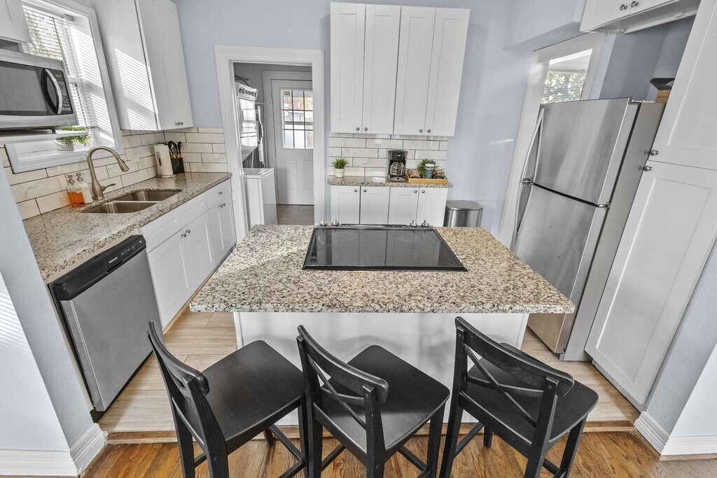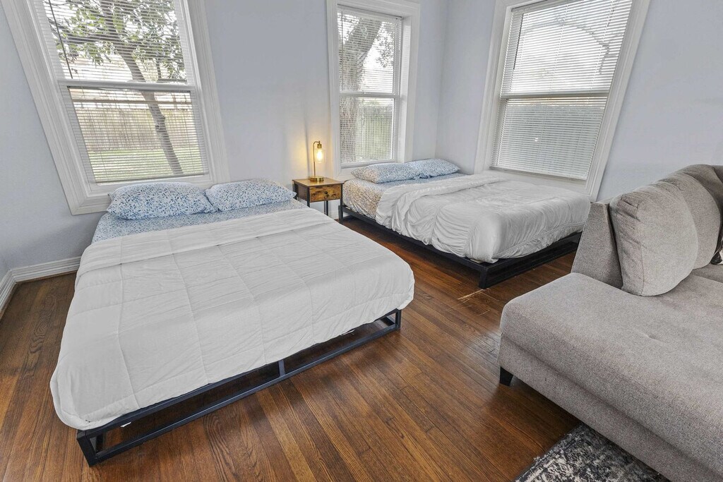 Experience the best of Houston living in this modern townhome located in the MacGregor Neighborhood, close to Downtown and the Texas Medical Center. This spacious two-story home comfortably accommodates up to 10 guests and includes a crib for families. Enjoy the convenience of a 3-car driveway and in-unit laundry facilities, all within a private gated community. This townhome is thoughtfully designed to cater to the needs of business travelers, families, and groups. It features central AC for year-round comfort, high-speed Wi-Fi with 1Gbps download/upload speeds, and a fully equipped kitchen with appliances, utensils, and essentials. Relax in the living room with a big-screen smart TV, seating, decor, books, and games. Guests can enjoy off-site gym access and a variety of community amenities, including a full gym, kids park, tennis courts, basketball courts, and a baseball field. Parking is available in a 3-car driveway with additional street parking. Pets are welcome with host approval and an additional fee, while unauthorized pets will incur a $500 extra fee. Nestled in a vibrant and historically significant neighborhood near Emancipation Park, this townhome offers a mix of residential and commercial spaces with a lively atmosphere. Enjoy easy access to major attractions such as the Toyota Center, Medical Center, and Downtown, all within a 10 to 15-minute drive. The area is well-connected with public transportation options, making it easy to explore Houston's urban landscape. Smoking is permitted outside only, and events are allowed with prior notice and fees. Unauthorized parties are strictly prohibited and may result in a $1,000 fine. Indoor smoking or marijuana use in common areas may lead to cancellation without refunds and a $600 fine. Quiet hours are between 10 PM and 8 AM. Check-in is flexible, but late checkouts without prior arrangement incur a $25 fee per 30 minutes past the agreed time. For stays longer than 7 days, a mid-stay cleaning fee of $150 per week is required. The townhome is remote work-friendly with high-speed Wi-Fi at 1Gbps, ensuring seamless connectivity for all your work-from-home needs. [SI]