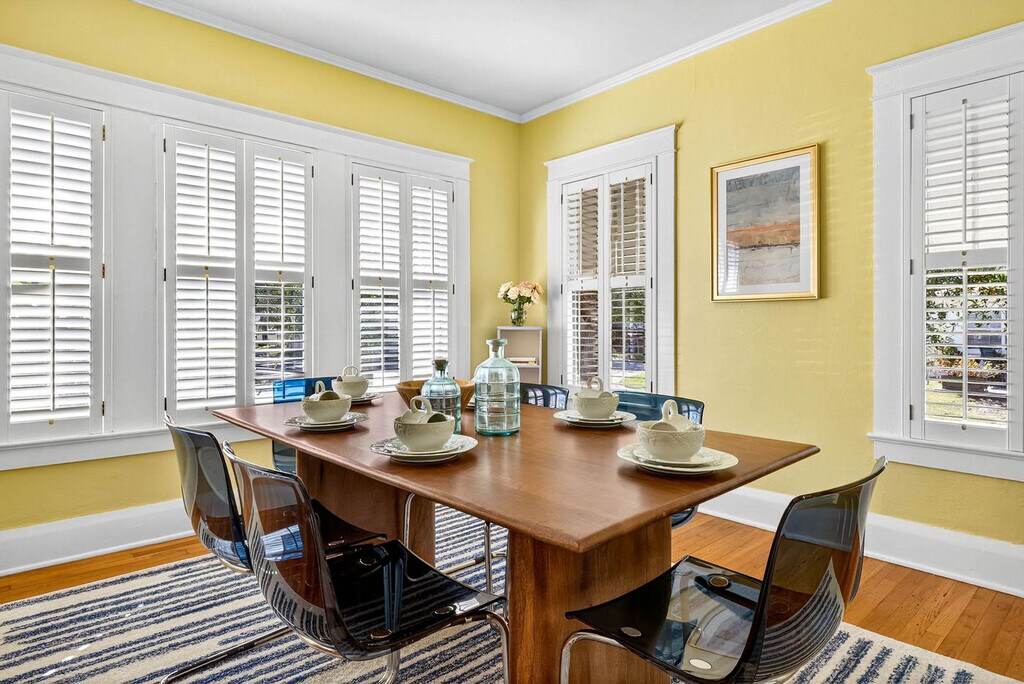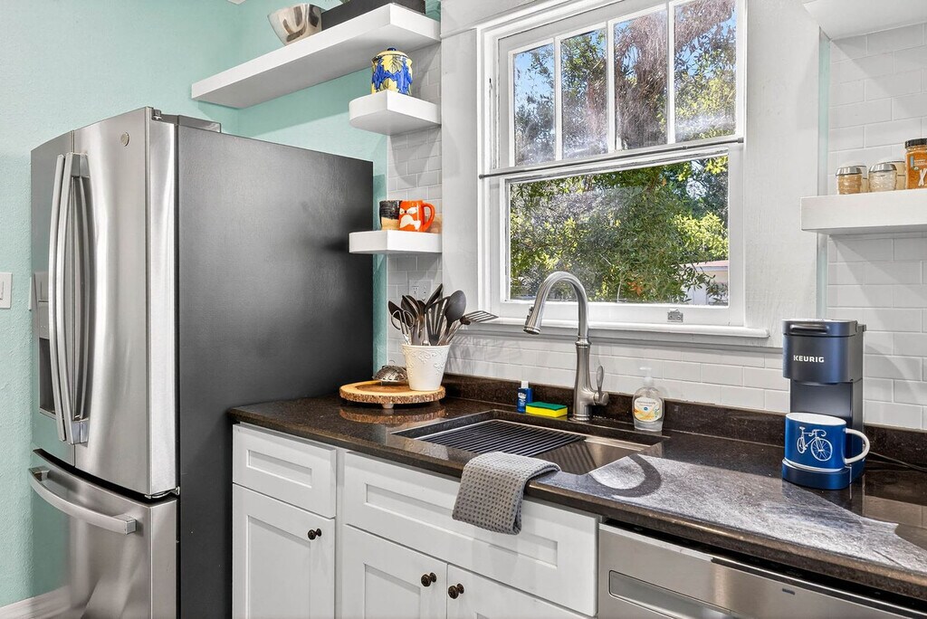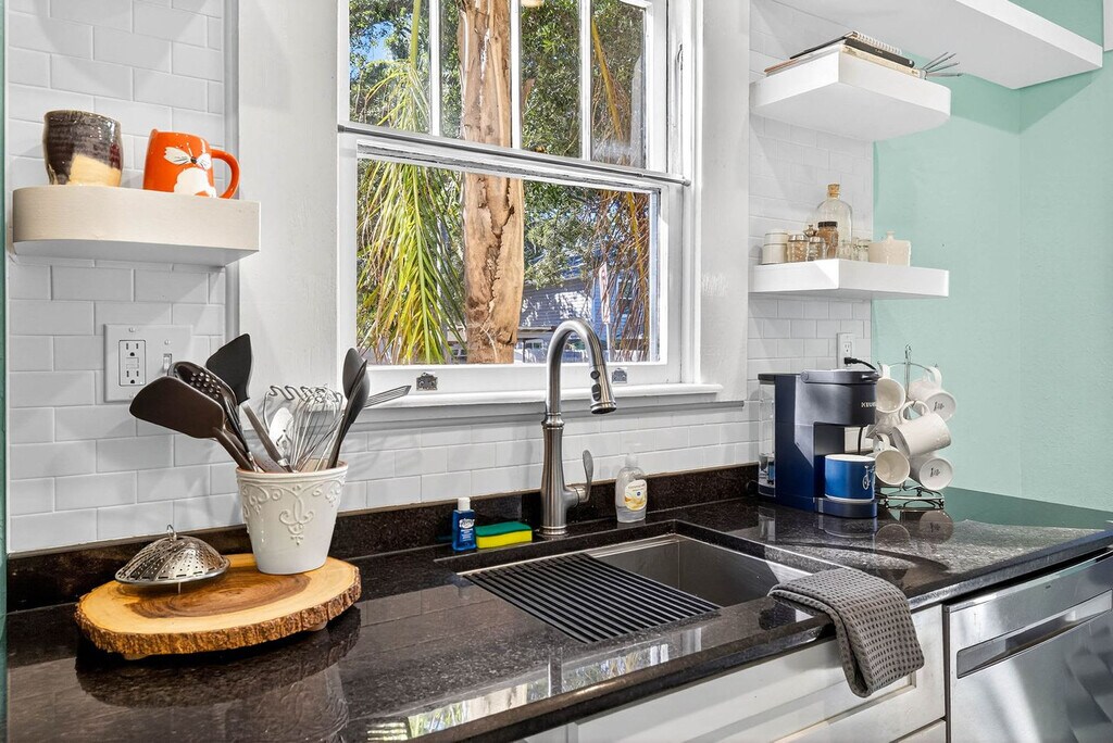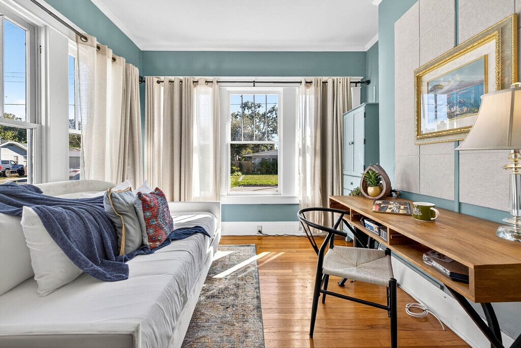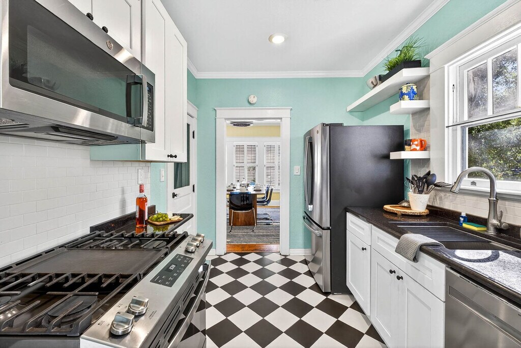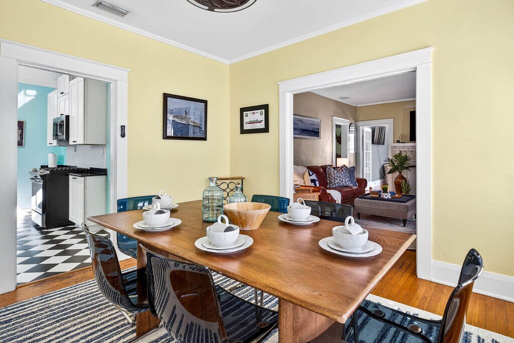 Feel at home in this timeless 1930 Palma Ceia bungalow that blends historic charm with modern design. This family-friendly retreat comfortably sleeps six and features three bedrooms and two baths. This design-forward retreat features restored hardwood floors, cheerful colors, and thoughtful details. The open living and dining room includes a smart TV and cozy sofa. The retro-inspired kitchen features mint walls, checkerboard floors, and stainless appliances, along with a coffee nook with an espresso set-up and bar seating. Enjoy the private fenced yard beneath majestic oaks with patio seating for evening gatherings, and a charming front porch for morning coffee or quiet nights in. Driveway parking is available for two vehicles, and street parking is also available. House-trained, groomed pets are welcome with a fee of $100 per pet per stay, or per month for stays exceeding 28 days. Permits for professional video or photo shoots can be requested for a fee. Nestled in the heart of Palma Ceia, one of South Tampa’s most desirable historic districts, this apartment puts you steps from everything that makes this area special. Grab a morning coffee from Buddy Brew, stroll the boutiques and restaurants along MacDill Avenue, or hop over to Hyde Park Village for upscale shopping and brunch. Bayshore Boulevard, Tampa’s iconic waterfront promenade, is just 2 minutes away. You’ll be 2 minutes to Bayshore Boulevard, 8 minutes to Hyde Park Village, 10 minutes to Downtown Tampa & Water Street, 15 minutes to Tampa International Airport, and 25 minutes to St. Pete & Gulf Beaches. Everything you’ll want to explore is just a quick walk or short drive away. The neighborhood’s grid layout makes it ideal for biking or strolling to nearby cafés and parks. Quiet hours are from 8 PM to 8 AM. Smoking indoors and the use of fireworks anywhere on the property are prohibited, but there is a designated smoking area outdoors, 15 ft away from the property. Smoking violations or the presence of smoke smell may incur a $250 remediation fee minimum. Refrain from loud music between 8 PM and 10 AM. Misuse of the AC system, including setting the unit lower than 68 degrees leading to a technician call-out, may incur additional repair fees. Only guests listed on the reservation are allowed on the property. Illegal drug use results in immediate eviction without a refund. Disabling or removing security devices or any technology results in a fee or removal from the home without refund. Violation of any of the house rules may result in removal from the home without a refund. Bedroom 3/Flex Room includes a daybed and workspace for remote stays and a smart TV. This is a 1930s home that’s been thoughtfully updated. You’ll enjoy the character of original hardwood floors and historic details throughout. [SI]