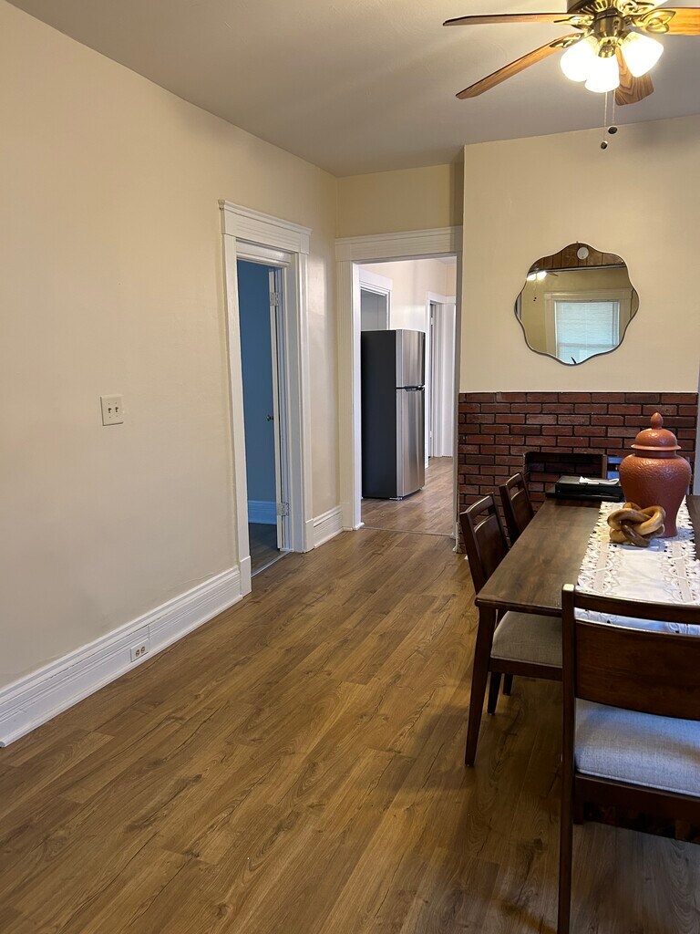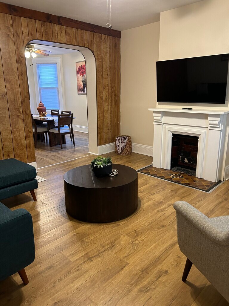 Right by the Interstate 71, this charming duplex home offers a cozy and comfortable stay. The kitchen is newly updated and remodeled with all brand new appliances. It is fully stocked with serveware, drinkware, utensils, pots, and pans. Enjoy your fresh cup of coffee made in the new Keurig Machine. The dining room table is made of mango wood, perfect for enjoying a meal with family or friends. Quiet and peaceful neighborhood located right by the police station.