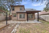 1/2 off the first month's rent with a lease signed in April Welcome to this beautifully maintained 3-bedroom, 2.5-bath home located in the highly desirable Villas of Redland Ranch subdivision. Situated in a small, private neighborhood on a quiet cul-de-sac and backing to a serene greenbelt, this property offers exceptional privacy and convenience within sought-after NEISD schools. Inside, the home features a spacious living room with a cozy fireplace, creating a warm and inviting atmosphere for relaxing or entertaining. The primary suite is located upstairs and serves as a private retreat, complete with a luxurious bathroom sanctuary. Throughout the home, you'll find wood, tile, and luxury vinyl plank flooring—there is no carpeting—providing both style and easy maintenance. The kitchen is equipped with stainless steel appliances, and a high-quality washer and dryer set is included. The backyard is designed for both enjoyment and low upkeep, offering greenbelt views, mature trees, and an almost fully shaded yard. Outdoor living is enhanced by a covered patio, an extended cement patio, and an additional 14' x 14' covered patio, along with a small storage shed. Additional features include a water softener, irrigation system, and an electric vehicle charger attached to the garage. Conveniently located just 2 miles from HEB and 2 miles from Loop 1604, this move-in-ready home combines privacy, thoughtful upgrades, and an unbeatable location in Villas of Redland Ranch.