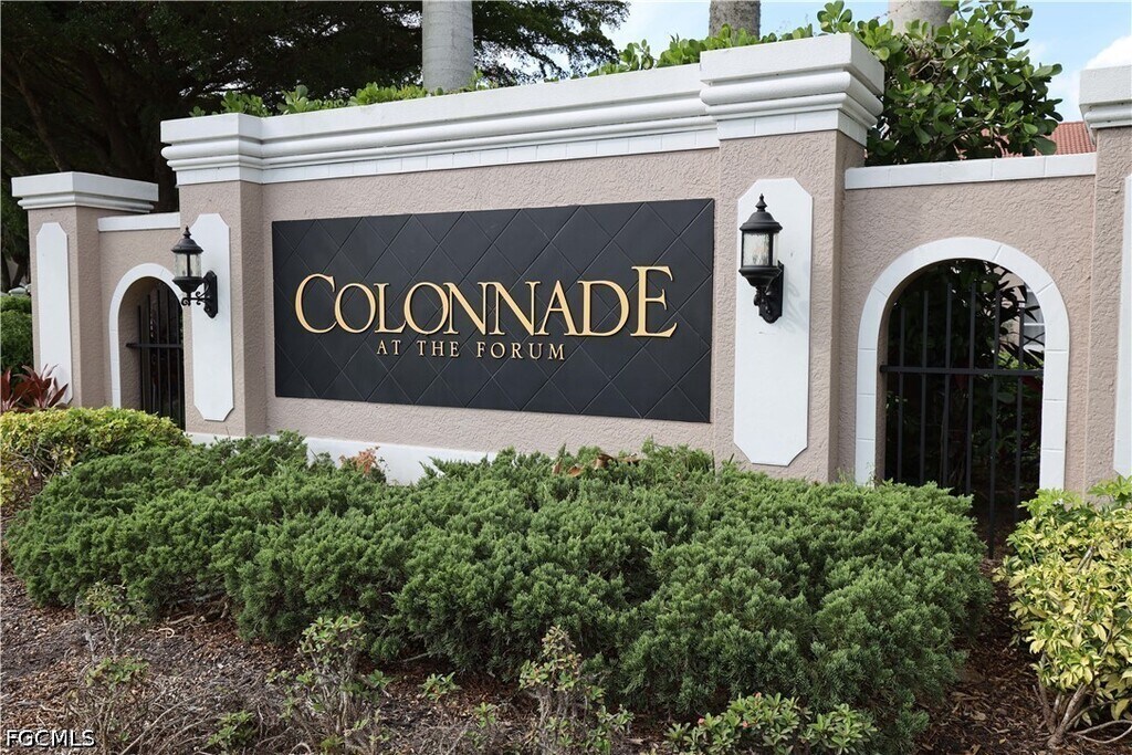 Discover luxury living in the gated community of the Colonnade at the Forum! As you step inside of tis 3/2 townhouse,you'll be greeted by the timeless elegance of the tile floors that grace the main level living areas,from the welcoming living room to the well-appointed kitchen,boasting rich,screened-in lanai where you will be treated to serene views of the patio and lush gardens - the perfect spot to enjoy morning coffee or unwind after a long day. Retreat to the primary suite with a on suite bathroom featuring soaking tub. The thoughtful design of his home includes internet and basic cable,and dedicated laundry room,ceiling fans to keep you cool on warm Florida days,an attached garage,and access to numerous community amenities including a pool,sports courts,and clubhouse,all mere minutes from shopping,restaurants,and entertainment. Your dream lifestyle awaits.