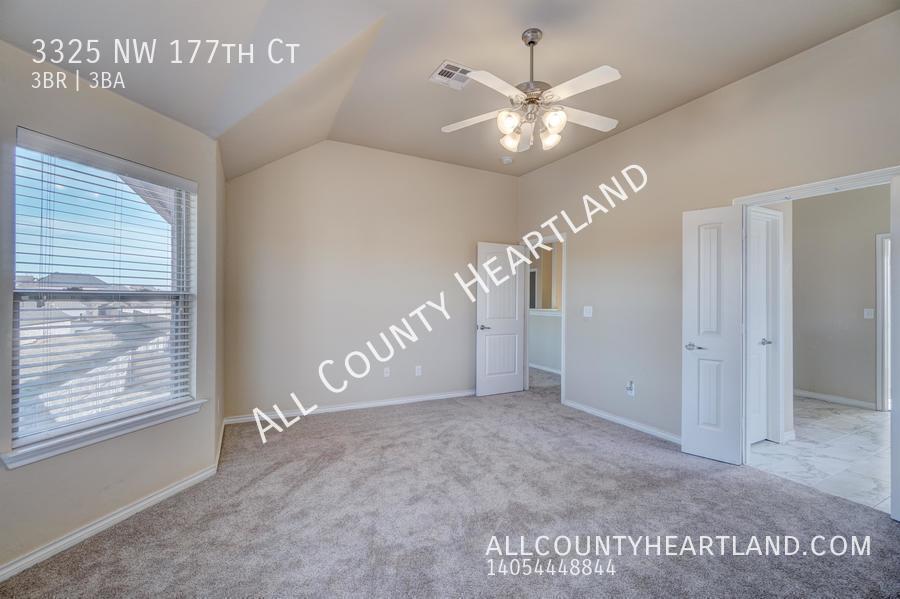 This inviting residence features 3 bedrooms, 2 1/2 bathrooms, and a bonus room upstairs, providing the perfect blend of space and functionality. The spacious living area boasts warm wood floors and a charming fireplace, creating a cozy focal point for gatherings. Natural light fills the home, accentuating its bright and airy ambiance, thanks to the abundance of windows throughout. The master bedroom is a true sanctuary with a generously sized ensuite offering double vanities, a large soaker tub, and a spacious walk-in closet. Step outside to a delightful backyard, perfect for relaxation or entertaining. Located in the Deer Creek Schools district, and with easy access to Hefner Parkway and the turnpike, this home offers both luxury and convenience. Make this beautiful residence your own and experience the best in Edmond living. Every All County Heartland Property Management residents are enrolled in the Resident Benefits Package (RBP) for an additional fee which includes liability insurance, HVAC air filter delivery, on-demand pest control, and much more! ****Security deposit and signed lease holds the property. First months rent and $275 admin fee gets you moved in. Schedule your tour now at Small Dogs allowed after approval and additional fees. 2 Car Garage 2.5 Bath 3 Bedroom Bonus Room Close To Shopping Disposal Gated Community Microwave Oven Split Plan Stove/Range Washer/Dryer Hook Up Wood Floors