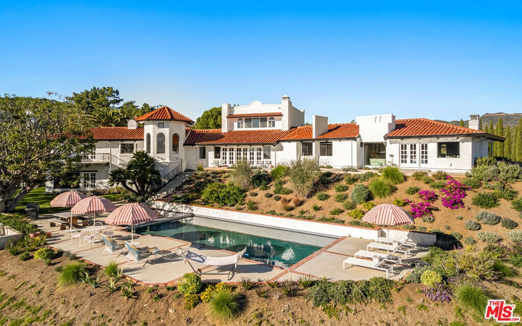 Welcome to Rancho Pellicano! High above some of Malibu's best beaches (El Matador, El Pescador,Broad Beach) with beautiful ocean views from every vantage of its five completely usable and fully fenced/gated acres, this impeccably styled 5 bedroom, 4 bathroom, almost 6400 sf Spanish Colonial retreat is the stress-removing oasis you didn't know you needed. Step inside your own private Malibu filled with terra cotta floors and vaulted, wood beam ceilings, and find yourself immersed in unparalleled comfort and solitude. Designed to perfection by Lala Reimagined and featured in Architectural Digest, this incredible retreat features a main level with multiple areas perfect for entertaining, a kitchen any home (or personal) chef would die for and a dining room to savor every bite. Down the hall, the primary suite is smartly tucked away from the action, while three more bedrooms offer plenty of room for family or guests. Upstairs, a large den awaits quiet evenings in filled with board games and movie nights. And the downstairs guest suite offers a fifth bedroom with en suite bath, living room with dining area and kitchenette. Outside, enjoy the outdoors all year long with a swimmer's pool, large deck, grassy knolls and access to some of Malibu's best hiking just a short walk away at the Nicholas Flat Trailhead. There is plenty of on-site parking. Also available short term. Please reach out for pricing. MLS# 26637417