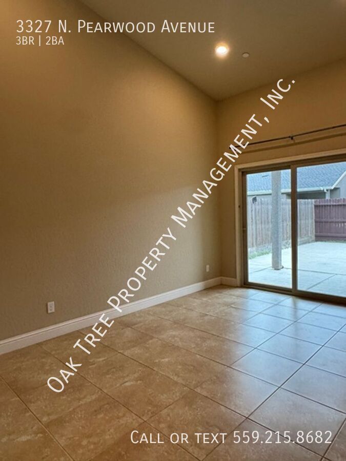 CLICK HERE to schedule a showing: AVAILABLE NOW! Located near Dakota & Armstrong, this beautiful 3-bedroom, 2-bathroom home boasts a large, spacious kitchen that is perfect for those who love to cook and entertain. The home also features a great room, an inside laundry room, and a dining area that provides ample space for hosting gatherings. The large backyard perfect for outdoor entertainment. The home also includes a two-car garage providing plenty of storage space and solar to help keep down your monthly PG&E bills. Convenience is key with this property, as it is situated close to schools, shopping centers, and trails, making it an ideal location for those who enjoy an active lifestyle. 10-month lease. Small pet considered. A refrigerator, washer and dryer is provided for tenant's use (no warranty). Tenants will be responsible for all utilities including PG&E, solar true up, water, sewer, and trash. All tenants are required to obtain renters insurance prior to taking possession of the property and will be required to submit a profile through prior to final approval. READY TO APPLY? Please visit our direct website at and click on the prospective applicant's tab to download our rental application and return it to our office at 516 Bullard Avenue, Clovis, CA 93612. Close To Schools Close To Shopping Close To Trails Dining Area Great Room Inside Laundry Room Large Backyard Large Spacious Kitchen Three Bedrooms Two Bathrooms Two Car Garage
