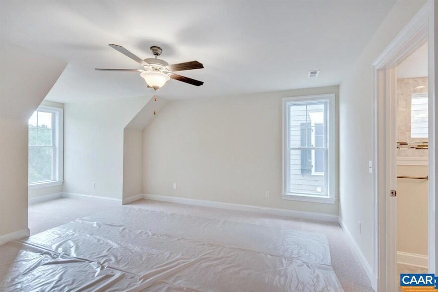 One level living in desirable Old Trail neighborhood. This beautiful end unit village home features large vaulted living room with fireplace; Spacious island kitchen with gray cabinets and granite countertops, abundant pantry space, cabinets with pull outs; large dining room; main level primary bedroom with walk-in closet and ensuite bath; home office; upper level features 2 bedrooms and theatre room with 2 additional baths and cedar closet; attached 2 car garage. Enjoy the amenities that the Old Trail neighborhood has to offer including golf course, swimming pool, walking trails, shopping and restaurants. Just minutes to downtown Charlottesville and interstate 64.