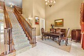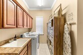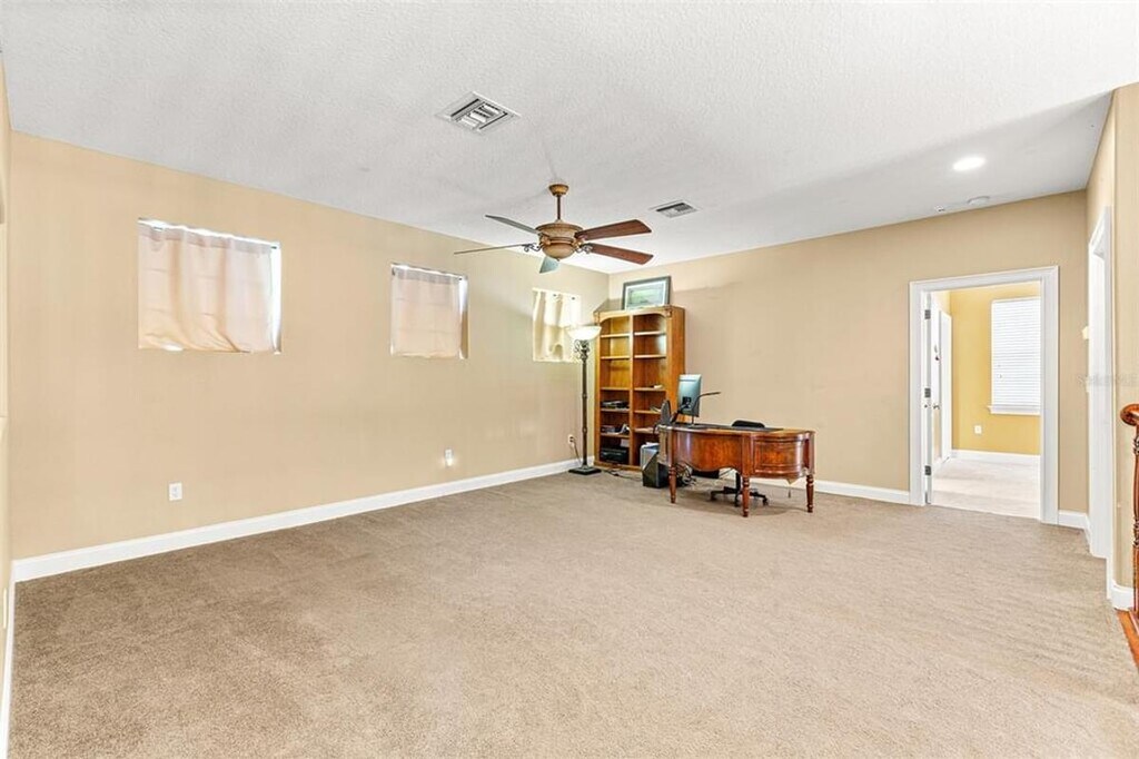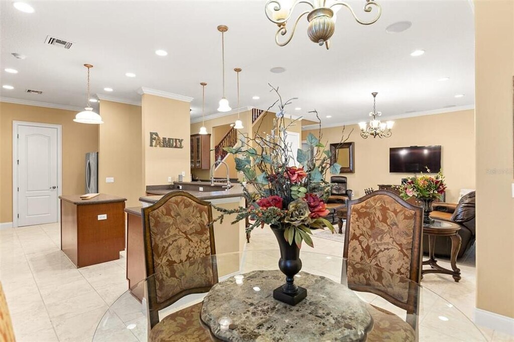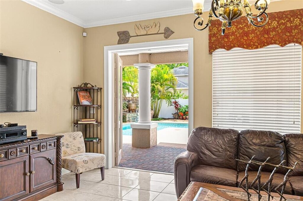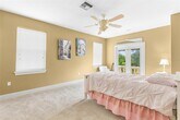 Experience the perfect blend of luxury and comfort—whether you're looking to rent or buy—at this exquisite custom tropical pool home located at 3329 Schoolhouse Road in the highly sought-after Harmony Main community. Enjoy unparalleled privacy with no neighbors across the street, just breathtaking nature views and serene walks around the pond with scenic Buck Lake vistas. Boasting 4 spacious bedrooms and 4.5 modern bathrooms, this stunning 4,100-square-foot residence offers ample space for living and entertainment. Impress your guests from the moment they arrive with grand columns, elegant decorative glass double entry doors, and a sweeping custom staircase—ideal for capturing life's special moments. The formal sitting area sets a sophisticated tone, perfect for a baby grand piano, while the elegant dining room accommodates large gatherings with ease. Modern glazed ceramic tile flooring flows throughout the main living spaces, leading to an inviting living room—the heart of the home. Entertain in style as the living room opens directly to your private tropical oasis, featuring a sparkling pool and waterfall surrounded by lush landscaping and majestic palm trees. The outdoor lanai includes a convenient half bath for easy access during poolside gatherings. Inside, the gourmet kitchen is a chef’s dream with plenty of counter space, abundant cabinetry, a cooktop, wall oven, and a sunlit walk-in pantry. Entertain effortlessly with a butler’s pantry, complete with a wine refrigerator, sink, and wine rack with cabinetry—perfect for hosting friends and family. The spacious downstairs owner's suite features brand-new carpet, dual walk-in closets, and direct access to French doors to the outdoor pool retreat. The luxurious en-suite bathroom is equipped with a sunken tub, dual sinks, and a spacious walk-in shower. When you walk up the Grand Wooden Staircase, you land on a spacious, well-lit open area. This is a great space for a home office with room for several office desks, a huge library, a game area, or a large teen living area. There is a junior owner’s suite to the right with a walk-in closet and a full bathroom. To the left, there is a 2nd junior suite, with a walk-in closet and a full bathroom that has dual sinks and a walk-in shower, both junior owner’s suites have Juliette balconies. The views from both junior suites are gorgeous. Nothing but nature, greenery and water! Down the hall is bedroom 4 which has access to another full bathroom. All bedrooms are oversized. Additional upgrades include a central vacuum system, elegant crown molding, new carpeting in all bedrooms, and a large laundry room with ample storage. Enjoy the vibrant community of Harmony, featuring exclusive amenities such as Buck Lake, community-owned boats offering free boat access, a fishing pier, rocking chairs, bench swings, picturesque walking trails, dog parks, playgrounds, sand volleyball, soccer field, basketball courts, ping pong tables, pickle ball, exercise room, two additional community pools, an onsite restaurant, coffee house, hair salon and the beautiful Harmony Preserve Golf Course. You’ll enjoy Saturday morning community Farmer’s Markets and scheduled community events so you can get to know your community neighbors. Served by top-rated schools—Harmony Community K-5, which is an easy 2 block walk and the Harmony Middle School, and Harmony High School, which is an easy and pleasant walk, bike or golf cart ride away—THIS home is ready to welcome you, whether you’re looking to rent or to make it your forever home. Don’t miss this opportunity to embrace luxury living in Harmony!