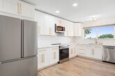 You do not want to miss out on this single story 3 bed,2 bath all updated home! New stucco,paint,bathrooms,kitchen w/stainless steel appliances,beautiful quartz countertops,& custom cabinets. New mini split systems throughout home. Enjoy this great layout with a large oversized living/family room w/ample space! Cozy up to the fireplace with quartz surround during the winter season! Large backyard! Newly stuccoed and fenced front private yard! This home is move in ready and will not last long! Nearby mall,shopping,& a 10 minute drive to the plaza/freeway!