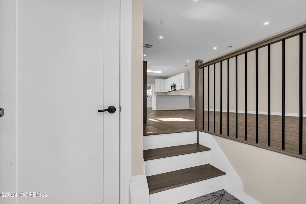 Gorgeous Keyport waterfront townhome. Open Concept w/ 3 bedroom 2 full bathrooms and 1 half bathroom with 2 car garage townhomes. Wood flooring and recessed lighting throughout home. white shaker kitchen cabinets,white quartz counter tops with island overlooking family room. Also includes stainless steel appliance package including refrigerator,gas stove,dishwasher and microwave. Washer/dryer on 3rd floor right outside bedrooms for ease and convenience. So much storage and closet space throughout home. Near the Henry Hudson Trail and GSP and thriving downtown Keyport