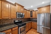 Kincaid Forest – Two-Car Garage Townhome Beautiful brick-front interior townhome located in sought-after Kincaid Forest. This spacious 3-bedroom, 2.5-bath home features a three-level bump-out and a composite double deck backing to peaceful wooded views. Inside, you'll find hardwood floors throughout all three levels, a gourmet kitchen with granite countertops, stainless steel appliances, a breakfast bar, and a bright eat-in area. The open floor plan flows seamlessly into the combination living and dining area — perfect for entertaining. The primary suite offers a walk-in closet, luxury bath with soaking tub, and separate shower. The walkout lower level opens to the serene backyard and provides additional living or recreation space. Other highlights include: Two-car garage and ample guest parking Crown molding and elegant architectural details Alarm system pre-wired Central A/C, natural gas heat and hot water Public water and sewer No pets, please Enjoy a quiet cul-de-sac location close to downtown Leesburg, major commuter routes, shops, dining, and trails.