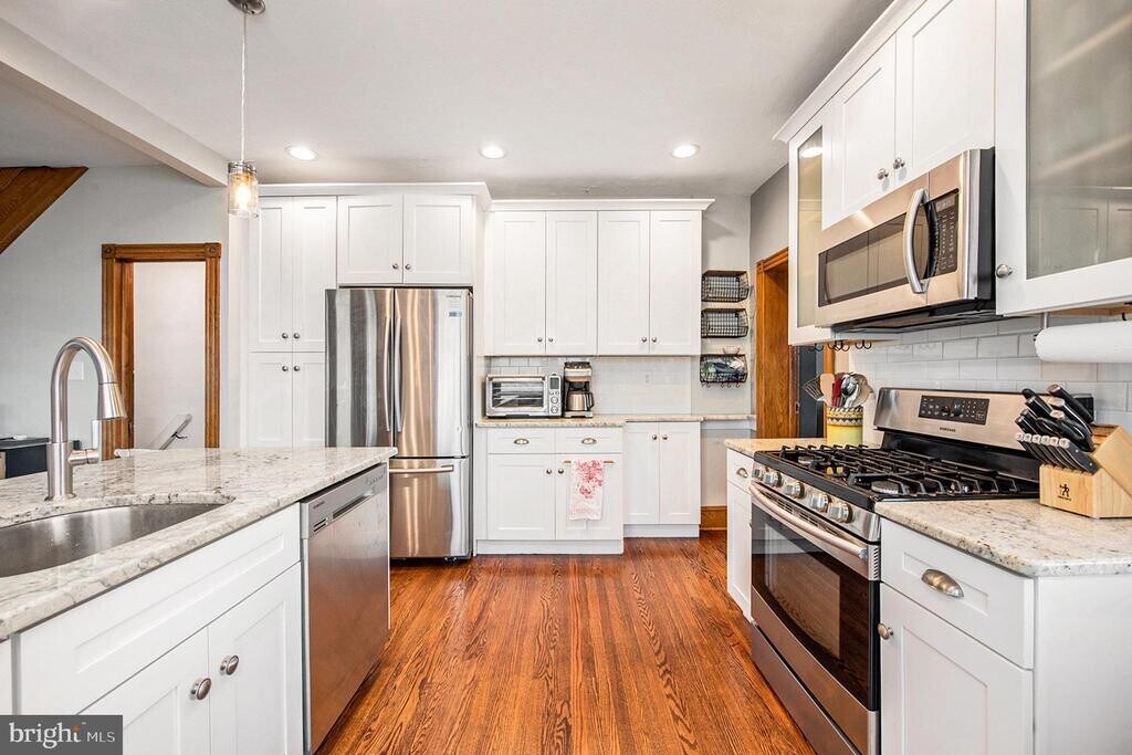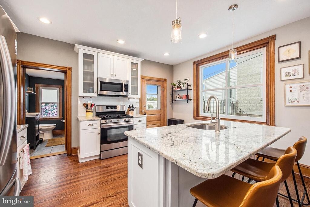 Perfectly situated on the upper avenues, this spacious 3-bedroom, 1.5-bath twin sits on a wide street with the added convenience of off-street parking. From the charming front porch to the open and inviting interior, this home offers comfort, character, and modern updates. Inside, you’ll find beautiful hardwood floors and detailed original woodwork that create a warm and welcoming feel. The open-concept main level is perfect for entertaining or relaxing after a long day. The kitchen connects easily to the living area and features granite countertops, stainless steel appliances, a center island with seating, and stylish pendant lighting. A convenient half bath and access to a large deck with sweeping views complete this level. The walk-out basement adds even more space and natural light. It’s ideal for a home office, workout area, or a second living space. You’ll also find a laundry closet with a full-size washer and dryer and access to a covered patio and fenced backyard, perfect for outdoor relaxation or small gatherings. Upstairs, three comfortable bedrooms offer plenty of closet space, and the full bathroom features marble tile and timeless finishes. Located within walking distance of Conshohocken’s most popular restaurants, shops, and cafes, this home also provides easy access to public transportation, major highways, and local parks. Don’t miss your opportunity to live in this beautiful and well-maintained home in one of the most desirable areas of Conshohocken. Schedule your showing today!