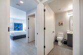 Feel at home in this luxury apartment featuring oversized windows with views of Long Island Sound and Manhattan. This modern high-rise offers 1 and 2-bedroom residences. This luxury apartment features a convenient kitchen island and a smart thermostat. Enjoy access to gourmet kitchens, sleek bathrooms, and an in-unit washer and dryer. Amenities include a rooftop pool, fitness center, sauna, outdoor terrace with a pizza oven, and multi-sport simulator. Parking is not included, but a nearby garage space may be arranged for an additional fee. A pet fee may apply. New Rochelle is a dynamic city just 35 minutes outside Manhattan, where you can enjoy a variety of activities, from dining to entertainment. For happy hour, head to Posto 22, NoMa Social, or Alvin & Friends for a great wine selection and well-curated cocktails. When it comes to entertainment, the New Rochelle Public Library and Picture House Regional Film Center offer a variety of events, including concerts, movies, and film screenings. New Rochelle's dining scene is diverse and vibrant. Dubrovnik Restaurant offers authentic Croatian cuisine, while Modern Restaurant and Lounge serves Italian-American dishes in a chic setting. For sushi lovers, Sakura offers a wide variety of options. Coffee lovers will find plenty to enjoy in New Rochelle. The Pop's Espresso Bar is a local favorite, known for its Italian-style coffee and pastries. The R Patisserie Cafe & Tea Boutique offers a cozy atmosphere, a variety of teas, and delicious baked goods. Quiet hours are between 10 PM and 6 AM. [SI]
