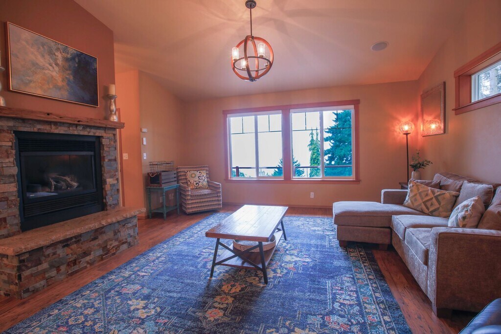 Located just moments from downtown Coupeville you will find this lovingly maintained home! Three bedrooms and two and a half baths with new flooring in the bonus room and primary suite! Gorgeous interior with top of the line finishes that include custom flooring, lighting, stainless appliances and so much more! Great room has a propane fireplace and high ceilings, and water view! Dining area has room for a large table and perfect for entertaining. Front deck with water view. This floorplan works well with privacy and a work from home opportunity! Tenants maintain landscape and pay all utilities. One dog with references and additional deposit. One year lease to start. This is a non-smoking home and property. Offered furnished, partially furnished, or unfurnished.