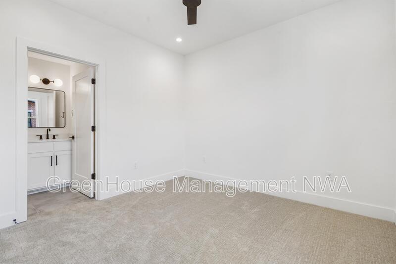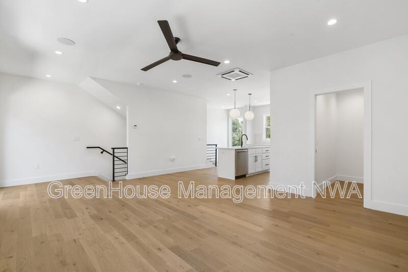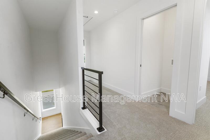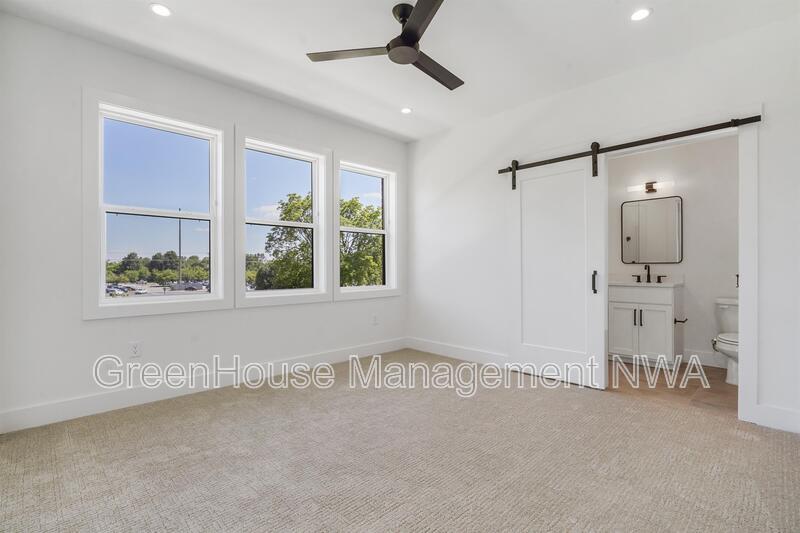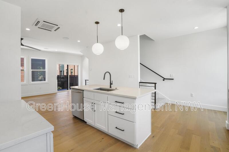 Enjoy modern townhome living in the heart of Bentonville. This three-story residence offers an open main level with a thoughtfully designed kitchen featuring custom cabinetry, soft-close finishes, and a walk-in pantry. The living area opens to a balcony for outdoor relaxation. Upstairs, both bedrooms include en-suite bathrooms, providing comfort and privacy. The convenient location places you just minutes from Bentonville Square, 8th Street Market, The Momentary, Walmart Home Office, and Crystal Bridges Museum.