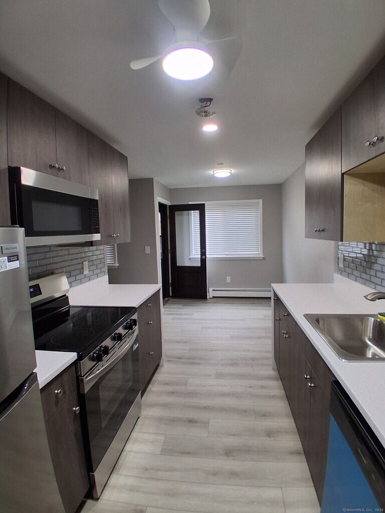 Call for Availability - THIS IS A MUST SEE! - COMPLETELY RENOVATED! Welcome home and be the first one to enjoy this charming completely renovated beautiful 2 bedroom,2 bath unit of this quiet tree lined community in Coachlight Square in Bridgeport's desirable North End! This ranch-style condo offers 1,048 sq.ft. of comfortable living. Enjoy a bright living room, an eat-in kitchen with new stainless-steel appliances, new cabinets and quartz countertops, a spacious primary bedroom with a private half bath and walk in closet. Plenty of closet space throughout! The second bedroom is perfect for guests or a home office. New flooring throughout as well as fresh paint, both bathrooms have been fully remodeled! Step out onto your private balcony and relax with views of the well-kept grounds and community pool with clubhouse equipped with a kitchen, bathroom and showers. You have access to a quiet backyard and assigned parking space in front of your unit as well as visitor parking.Conveniently located near Sacred Heart University, shopping, schools,restaurants, and major highways.. Don't miss this opportunity for maintenance free living in a great location! MLS# 24122339