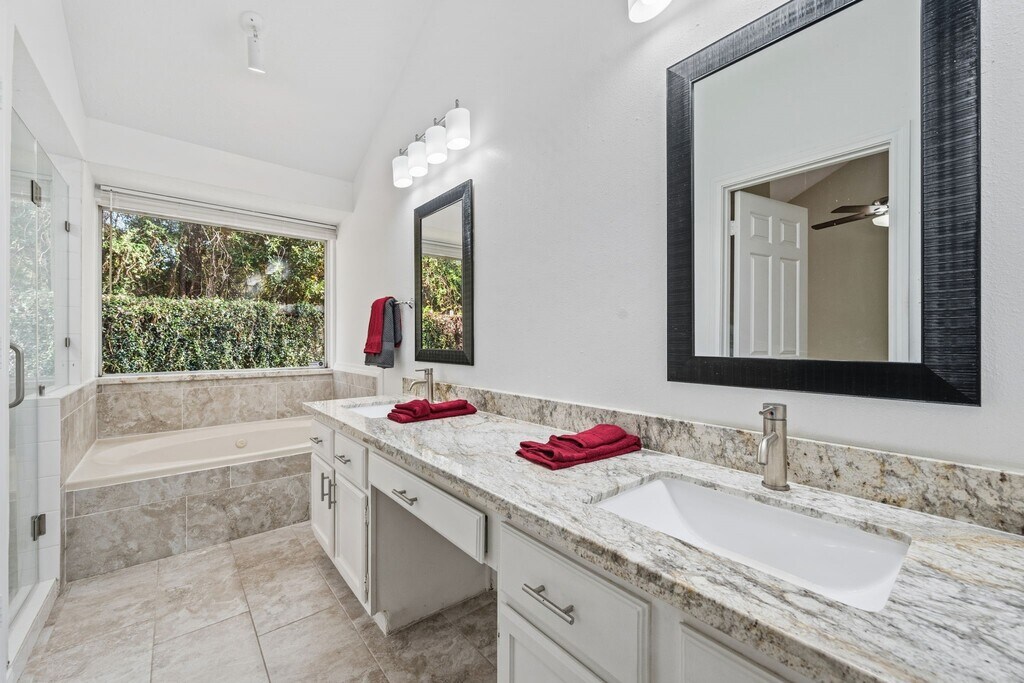 Spacious 3-bedroom,2-bath home with a dedicated office/study in Kings Crossing,ideally located near Kingwood Town Center for convenient access to shopping and dining. Updates include fresh paint,new siding,a new roof (2021),recently replaced water heater,and HVAC system. Tile flooring runs throughout the home. The generous kitchen features granite countertops,ample workspace,a large breakfast area,and an additional room perfect for indoor gardening or a flex space. A double-sided fireplace adds warmth and character while enhancing two separate living areas. The private primary suite offers direct access to a tile patio and an updated ensuite with double sinks,a new updated spacious seamless-glass shower,jetted soaking tub,and a large walk-in closet. Enjoy no rear neighbors,with a greenbelt backdrop providing walkable access to HEB and nearby amenities. MLS# 95534623