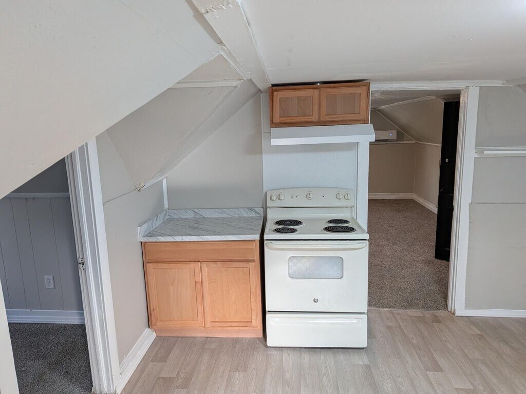 Remodeled 1 bedroom upstairs apartment with ample off street parking and nice yard! Remodeled upstairs 1 bedroom Apartment with separate entrance recently renovated with new kitchen, carpet, AC / Heat, and insulation. Driveway & yard space! Downstairs remodeled 2-bedroom Apartment with Washer / Dryer. Water / Sewer / Trash is additional $65 per month flat rate.