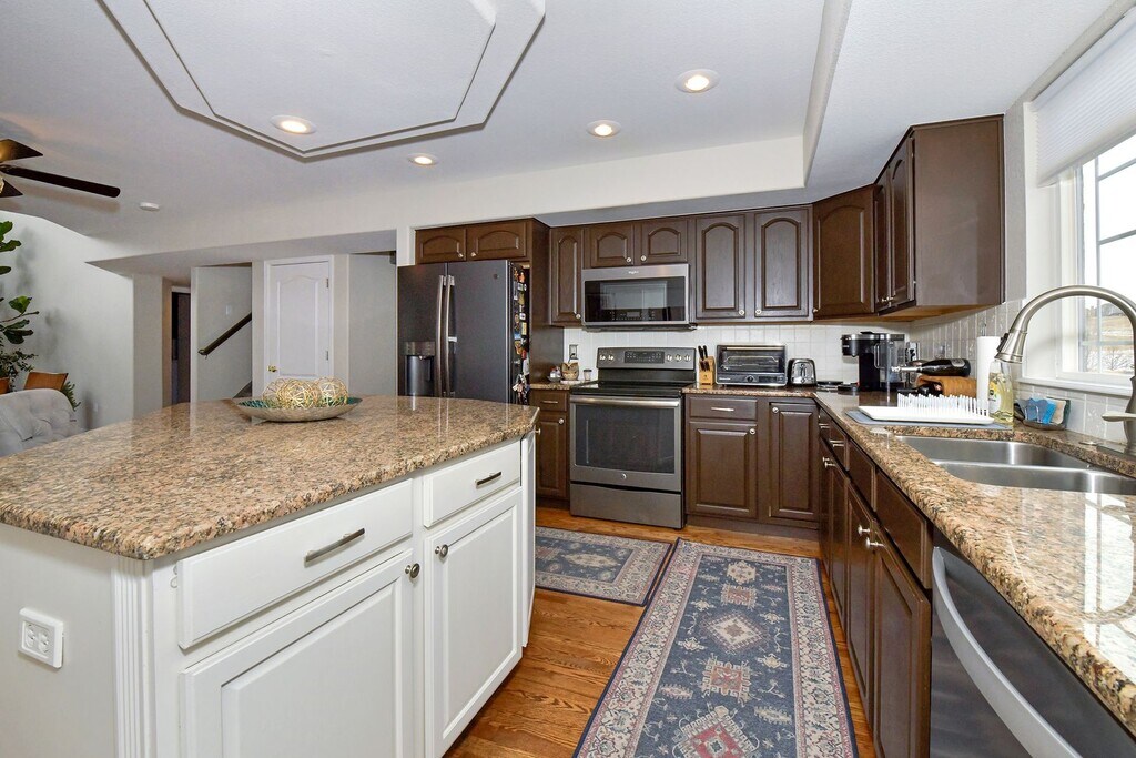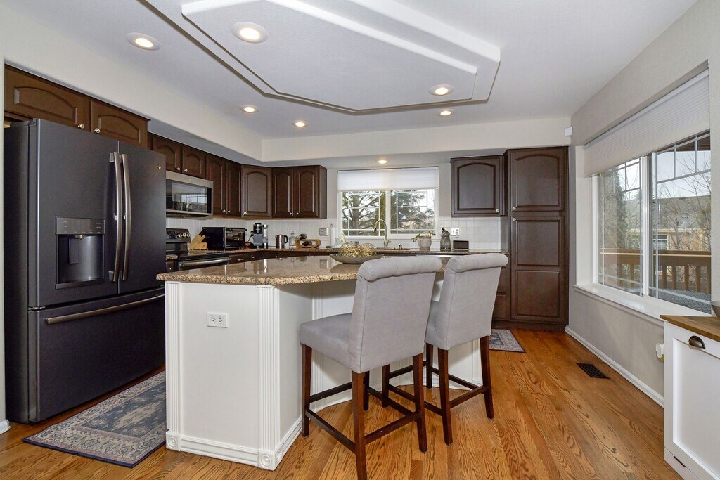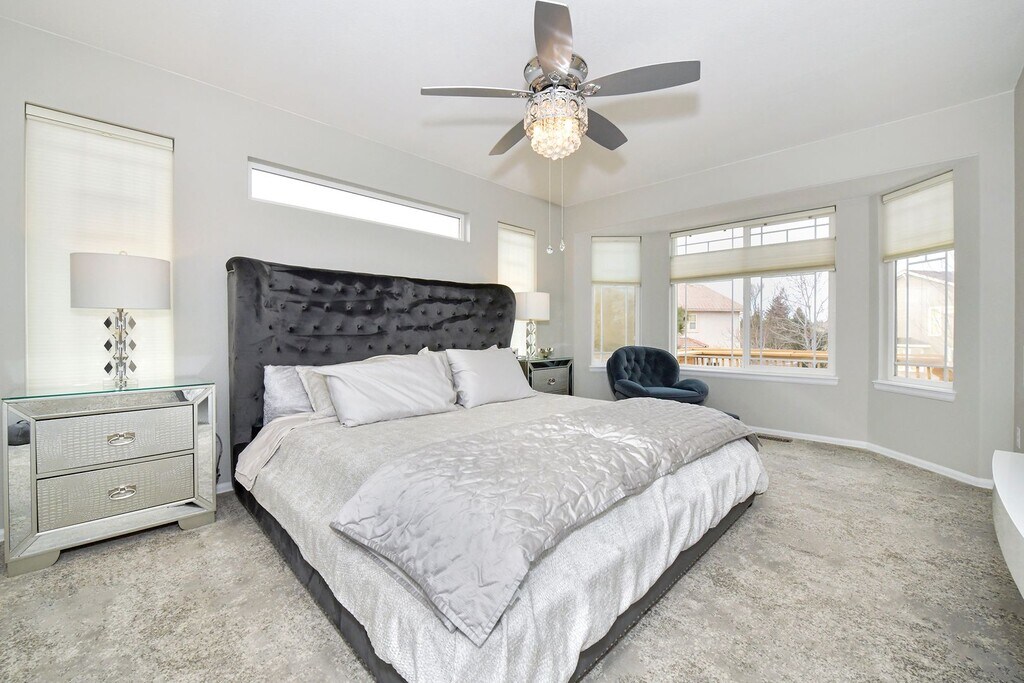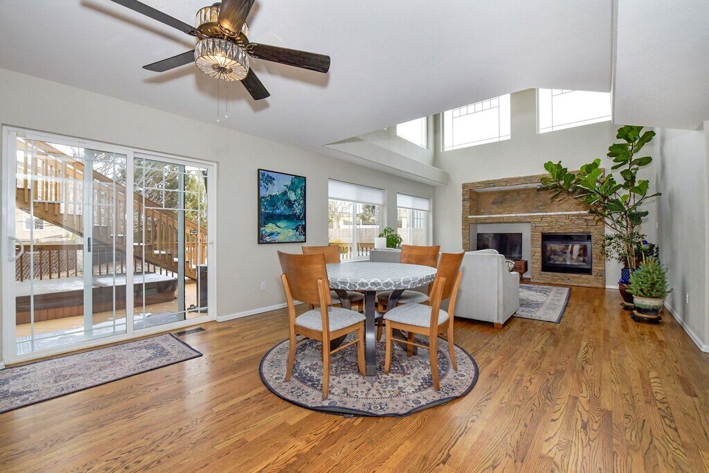 Welcome to this stunning 5-bedroom, 4-bathroom home in the beautiful Pine Creek neighborhood. This spacious 3922 sqft home offers a range of amenities. The main level has space for everyone, featuring a spacious foyer, double staircase, office, formal living room, and formal dining room with a bay window. The kitchen is open with granite counters and a pantry with ample storage space. Dining area with a walk-out. The great room has a cozy fireplace with dramatic high ceilings and beautiful accent windows. The upper level has a primary suite with a 5-piece bath, walk-in closet and walk-out to the upper deck, three additional bedrooms, and a main bath. The finished basement features a rec room, theater room, pool table, wet bar, bedroom, and a full bath. Experience and enjoy the health benefits of the built-in cedar sauna! Wood flooring and shutter blinds on the main level add a touch of elegance and sophistication to the living spaces, while the multi-level wood deck and hot tub offer a perfect spot for outdoor gatherings and enjoying the scenic surroundings. School district 20-Academy Large landscaped lot Central Air Sprinkler System Hot Tub Pool table Sauna This house has a range of amenities that are sure to please. Don't miss the opportunity to make this house your home. Contact us today to schedule a viewing. View virtual tour