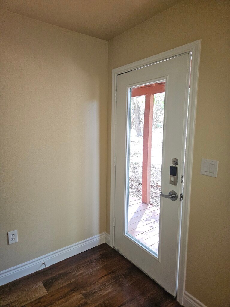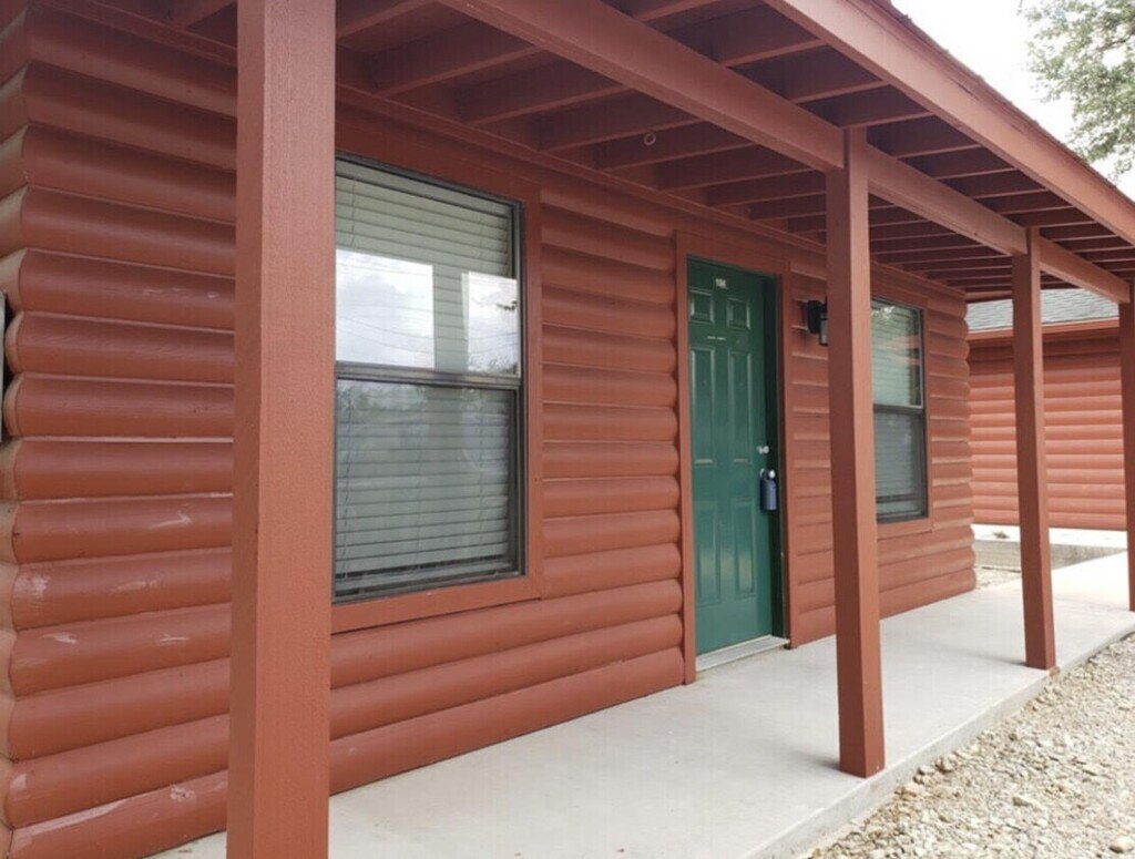 Apartment 103B is newly renovated studio apartment and includes a full-sized shower, washer/ dryer and two spacious closets. Brand new stove! You'll also enjoy new amenities, including a washer and dryer, air conditioner, refrigerator, and luxury vinyl wood flooring. Covered porch with a private entrance is a plus! Parking is conveniently located on a private lot.We love our furry friends, so pets are welcome with approval. They'll enjoy the outdoor areas while you relax by the fire pit in the beauty of the Hill Country.Log Cabin Plaza is conveniently located near San Marcos, Texas State University, and Wimberly. The property is situated on 3 acres and is perched on the gateway to the Hill Country. It has a wooded area behind the plaza, which creates a serene and peaceful, park-like setting.This small community is pet friendly, with breed restrictions and a maximum 40-pound weight limit. Apply today!