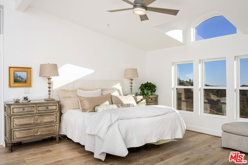 Situated on 10 acres, this private home offers panoramic views of Boney Ridge and Sandstone Peak. Recently updated, the home features natural wood finishes and an abundance of natural light through strategically placed skylights and large windows, designed to capture the surrounding landscape. The backyard includes a pool, spa, gazebo, and outdoor dining areas, along with a fire pit that offers views of the ocean, mountains, and sunsets. Located in Malibu's wine country, the property is 10 minutes from Malibu's pristine beaches and 10 minutes from Westlake Village. This serene retreat combines privacy and comfort, making it an ideal home for those seeking both peace and relaxation. MLS# 26651551
