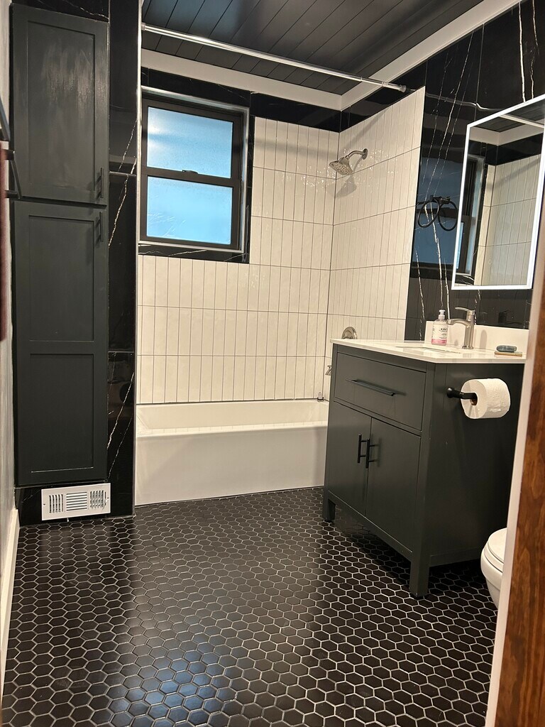 This house for rent has a newly remodeled open layout with a brand new kitchen and bathroom. Appliances include an updated stove, refrigerator, dishwasher, and microwave. The washer and dryer are in the basement. New windows and doors throughout, including sliding doors that go from the kitchen to the deck and backyard. With two bedrooms and an office, it's perfect for a small family, roommates, or a single tenant. Enjoy the skylights and original hardwood floors of this cute Longfellow house! Renter will be responsible for setting up an account and paying for electricity, gas, and internet. Owner will continue to pay the water and garbage/recycling bill. Renter will be responsible for shoveling and salting during the winter. Absolutely no smoking or vaping in or on the property.