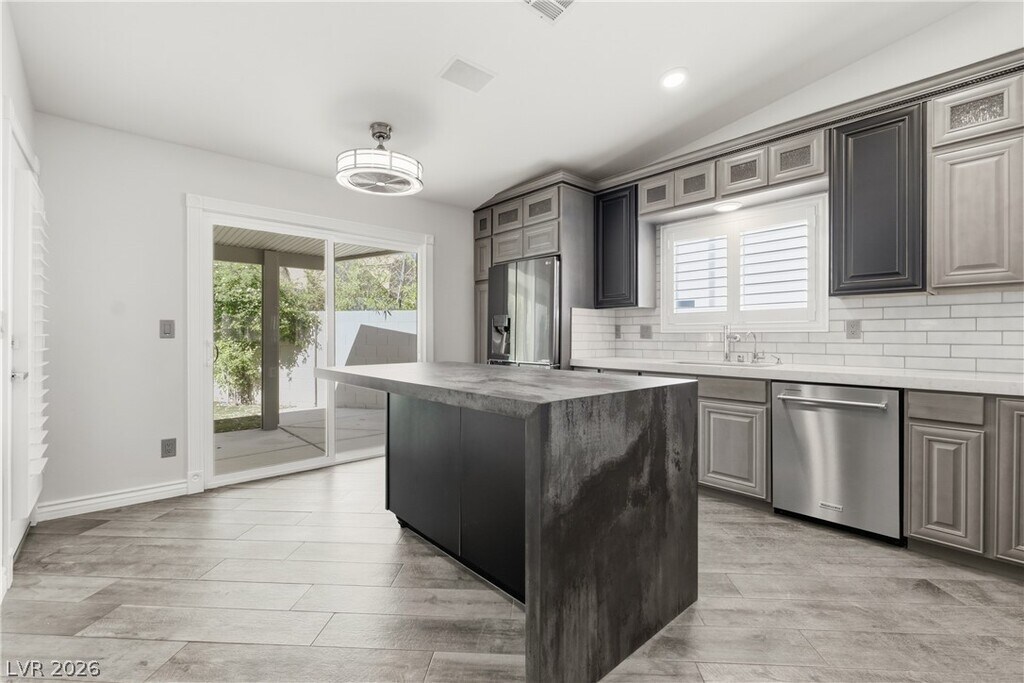Fully remodeled single-story home with 3-car garage, 11'2 wide gate, large covered patio, and low-maintenance Turtle Turf yard. Vaulted ceilings, wood-look tile, shutters throughout. Gorgeous designer kitchen with custom cabinets, waterfall island, induction cooktop (gas ready), and stainless appliances. Both baths fully updated with high-end finishes and jacuzzi tub. Laundry with built-ins. New HVAC (2025). Move-in ready—perfect for comfort and entertaining!"
