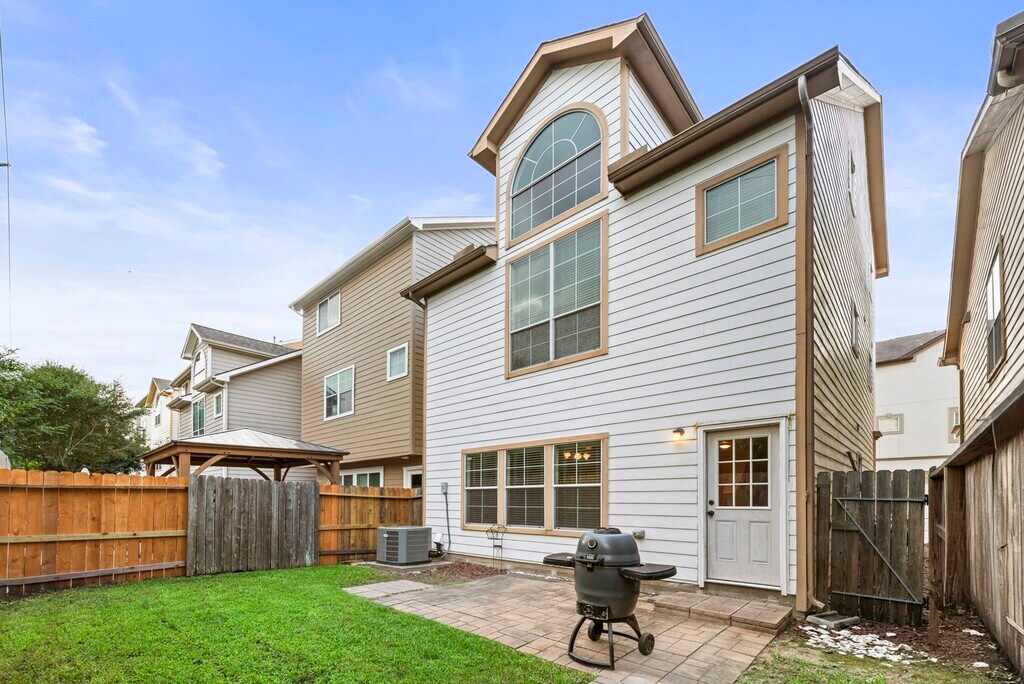 Kate MyhanExperience exceptional living in this spacious and modern 3-bedroom, 3-bathroom residence nestled within a gated community. This stylish home features a refined open-concept living area with hardwood floors, abundant natural light, and a chef-inspired kitchen complete with a large island, granite countertops, and stainless appliances. Enjoy effortless convenience with an included washer, dryer, and refrigerator, along with a private backyard offering serene outdoor space for relaxing or entertaining. Peace of mind comes standard, as this home is located outside known flood zones and has never flooded. Perfectly positioned for quick access to the Texas Medical Center, Downtown Houston, NRG Park, and the city s finest shopping and dining, this residence provides both tranquility and convenience. Discover secure, stylish, and maintenance-free living, just minutes from Houston s top destinations and workplaces schedule your tour today and make this distinctive rental your new home.