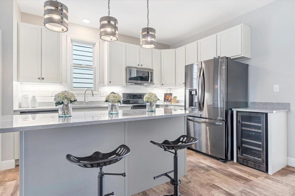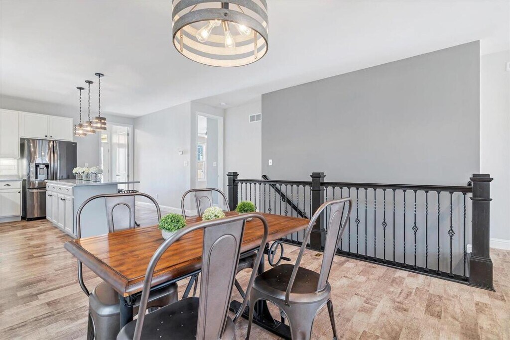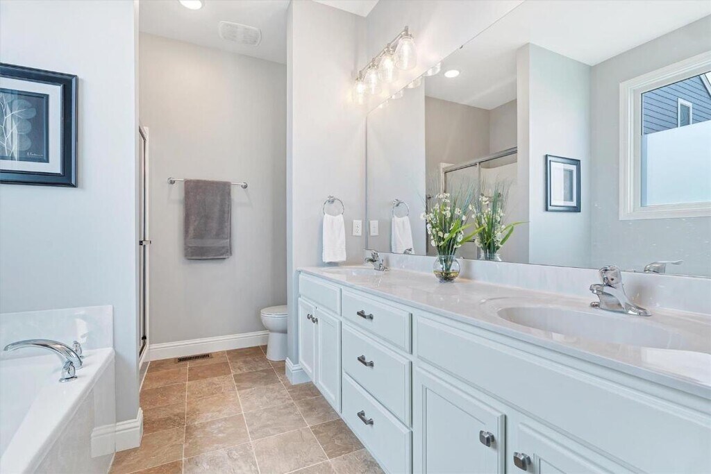 Available NOW! Gorgeous 4 bedrm like new home! The main level is flooded with natural light - it pours in through oversized windows and shows off the beautiful flooring and neutral paint. 9’ ceilings, 8’ doors, stylish plumbing & light fixtures. Open floor plan connects the roomy family rm, dining area and chef's kitchen. Straight from the pages of your favorite magazine, the custom kitchen is an entertainer's dream. Complete with 42†cabinets, large center island w/ breakfast bar, stainless steel appliances and quartz counters. Primary ste includes walk-in closet and private bath. MFL/mud room w/ access to fenced yard - includes pergola & patio - one of the best in neighborhood! 2 car extended garage, too. Finished LL is perfect for entertaining. Custom wet bar, 4th bedrm, full bath, rec rm and bonus rm. New Town offers neighborhood pool, sand volleyball courts, fitness center, restaurants, fishing, and playgrounds. All of these amenities, lawn care, washer/dryer all included w/ rent! $3200 security deposit plus $500 non-refundable move in fee due at lease signing.