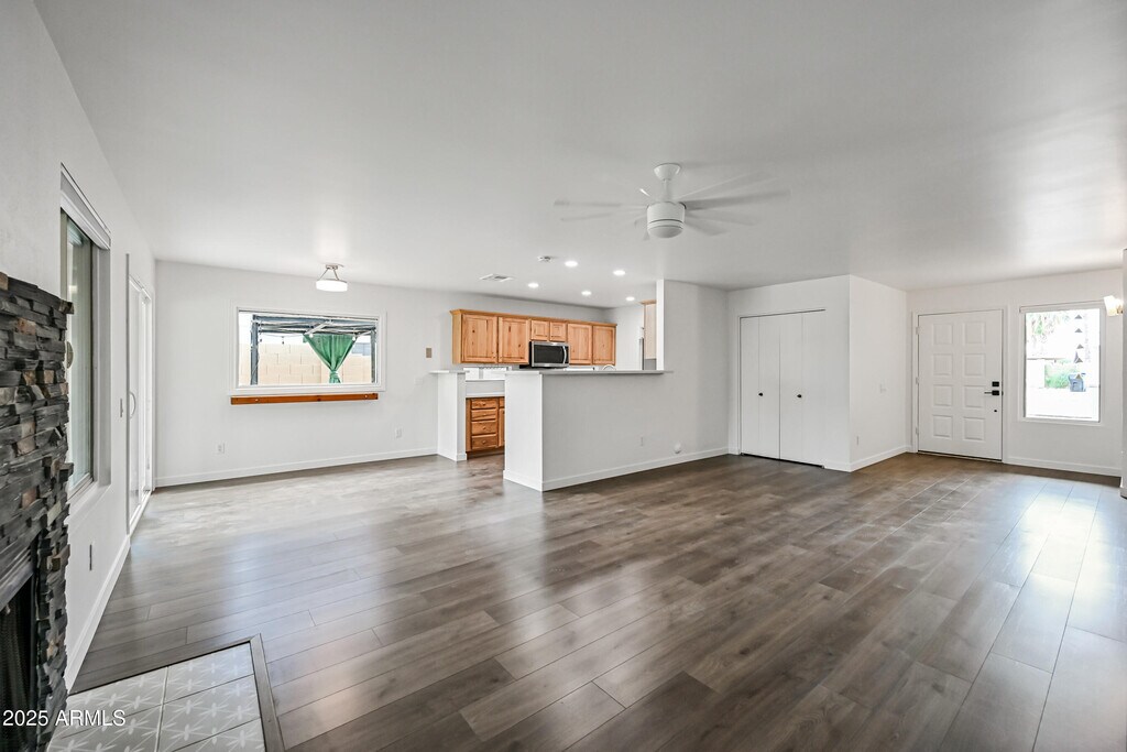 Fantastic 2 bedroom 2 bath home in north Phoenix! See yourself relaxing in this move in ready & an inviting floor plan with neutral colors throughout. A kitchen that serves up smiles & offers stainless steel appliances,quartz countertops,maple cabinets & lots of natural light. This lovable sized home offers dual pane windows,laminate and tile flooring through entire home,updated ceiling fans and light fixtures,walk-in closet in back bedroom,and an eye-catching fireplace. All fun and little work back yard with side gazebo,a two car garage with built in cabinets along with a pull down attic ladder,soft water unit,and a washer & dryer. Easy care front yard with a private front gated courtyard. Great location! Conveniently located by two major freeways! Tour Today!