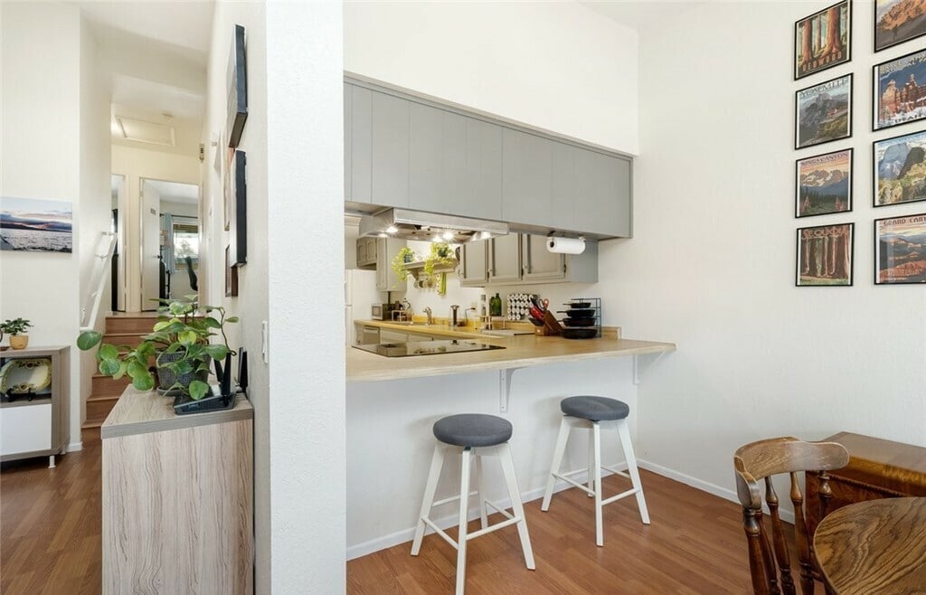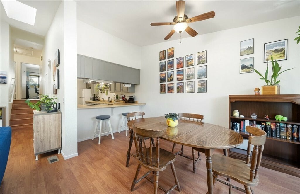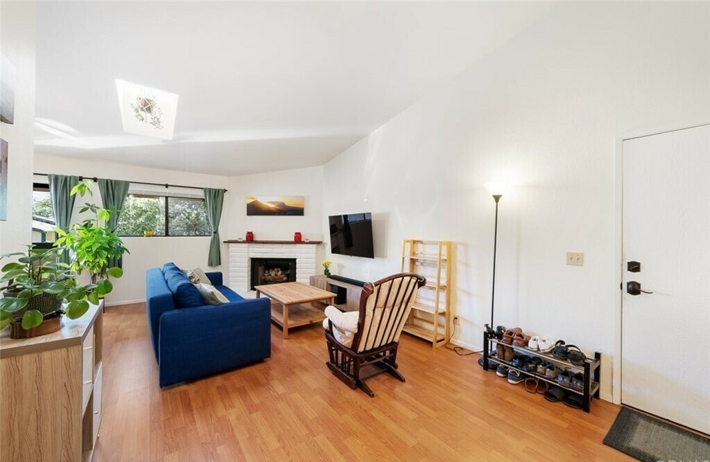 Lovely light and bright condo in great SLO location. This 2-bedroom 1.5 bath home features high ceilings, skylights which are unique to this unit, a charming fireplace, full bathroom with updated shower, stainless steel kitchen appliances, a large balcony, a coat closet by the entry, and indoor laundry. The kitchen offers a breakfast bar that's open to the dining room, a large pantry and lots of counter and cabinet space.