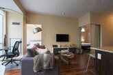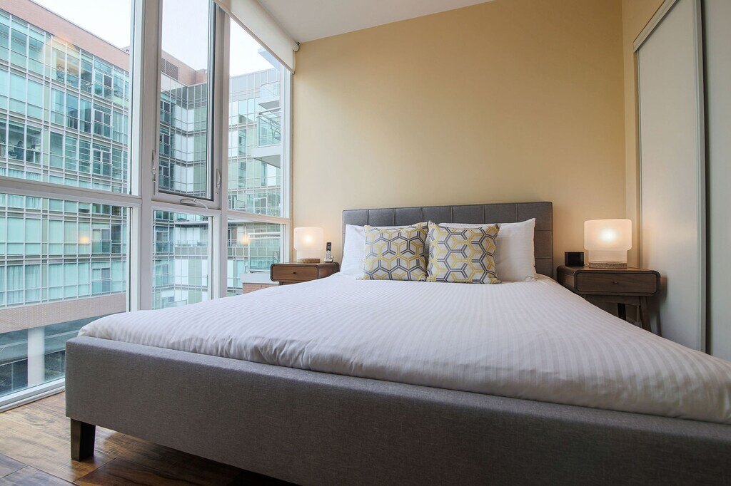 Feel at home in this large and bright apartment conveniently located in Old Toronto. This apartment overlooks St. James Park and the downtown core. This apartment features unlimited high-speed internet, a home phone with free local calling, a cable package, an in-suite washer and dryer, complimentary bi-weekly housekeeping, and a balcony/terrace. The fully equipped eat-in kitchen includes a gas stove. On-site parking is available. Steps to the St. Lawrence Market, Distillery District, and the Financial District, you're also close to Toronto's transit system and the Don Valley Parkway. Smoking is not allowed. [SI]