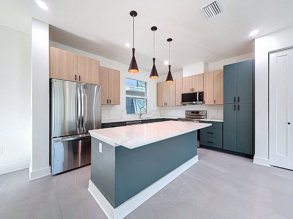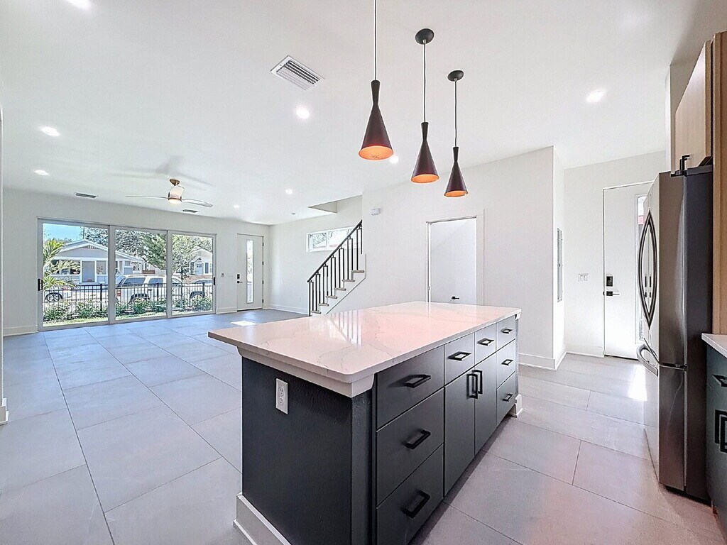 Stunning new construction, designer-curated townhome in the heart of Downtown St. Petersburg! Experience city living at its finest in this 3-bedroom, 2.5-bath residence with a 1-car garage, perfectly positioned within walking distance to top restaurants, breweries, art galleries, and more! Designed in a modern contemporary style with a strong urban-modern aesthetic, this corner unit benefits from enhanced privacy and abundant natural light. Clean lines, sleek surfaces, and an intuitive use of light create a serene retreat that also functions as an ideal space for entertaining. Enjoy off-street parking at the rear, a private garage, and paved sidewalks leading to your private entry. The bright, open-concept main level showcases a gourmet chef’s kitchen with Scandinavian-style cabinetry, quartz countertops, luxury appliances, and a spacious island breakfast bar overlooking the expansive living area. Low-maintenance tile flooring, soaring 10’ ceilings, and sliding glass doors open to a grassy yard space, perfect for indoor-outdoor living. A convenient half bath completes this level. Upstairs, the king-sized primary suite offers a spa-inspired bath, while two additional bedrooms feature spacious closets and share a stylish hall bath with modern finishes. A convenient laundry closet and luxury vinyl plank flooring throughout the upper level add comfort and functionality. Positioned on the South side of this intimate four-residence community, the home enjoys a desirable orientation with added privacy and separation from neighboring residences. Professionally landscaped green spaces, paved walkways, and tasteful wrought-iron fencing create an inviting urban-resort atmosphere. Located in the EDGE District - one of St. Petersburg’s most vibrant and progressive neighborhoods - this home is minutes from the Grand Central District, St. Pete Pier, and award-winning beaches, with effortless access to everything downtown has to offer. Homes of this caliber, combining new construction, modern design, and a premier walkable location, are a rare find in Downtown St. Petersburg! Rent $4200 per month. Move in requires $4200 security and 1st months rent with approved application(s); Application fee is $65 per adult occupant; Rent includes: Grounds Care, Tenant is responsible for electric, cable/internet, water/sewer/trash. Pets considered (NO cats); Small dogs less than 35lb, 2 pets max; breed restrictions apply; $500 deposit & $50 monthly rent per pet; Available Now! By submitting your information on this page you consent to being contacted by the Property Manager and RentEngine via SMS, phone, or email.