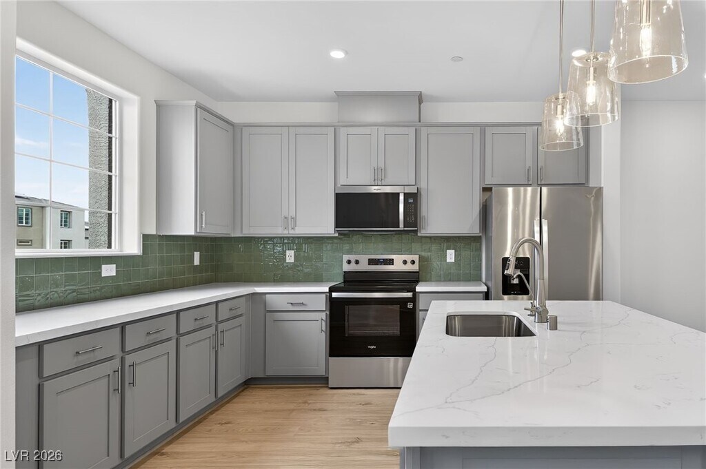 Brand-New • Never Lived In • Solar Included 3 Bedrooms 2 Bathrooms 1,330 sq. ft. 2-Car Garage Modern two-story townhome in the desirable Cadence master-planned community. The open-concept kitchen and living area features a private deck, and the first-floor primary suite includes an en-suite bath with walk-in shower and a large walk-in closet. High-quality finishes throughout: quartz countertops, custom backsplash, modern pendant lighting, wood-laminate flooring, stainless steel appliances, and premium front-loading washer/dryer. Brand-new window coverings to be installed. Solar panels included at no extra cost, helping reduce monthly utilities. Cadence Community Amenities: • Resort-style pool & splash pad • Play area & picnic spaces • Pickleball court • Outdoor fitness court • Walking paths & expansive green space.