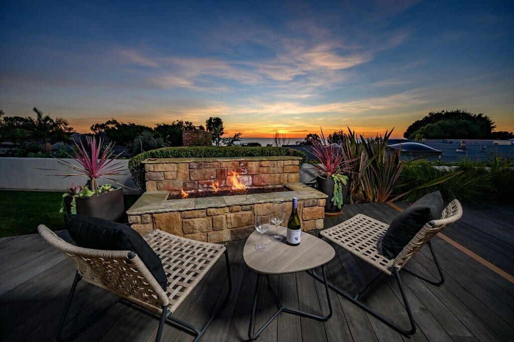 Luxury Ocean View 4BR Home in Del Mar Spacious and stylish 4-bedroom, 4-bathroom home located just a 5-minute walk to Del Mar Village and the beach. Enjoy panoramic ocean views, high-end appliances, indoor-outdoor living, and convenient access to San Diego attractions. This two-level home offers ample space for families or groups, with multiple living areas and fully equipped amenities. Main Level ? Living Room: Leather sofa, daybed, flat-screen TV, workspace with desk, and ocean view. ? Chef’s Kitchen: Wolf and Sub-Zero appliances, marble countertops, island seating for 3, bar area. ? Dining Area: Seats 8 comfortably. ? Primary Bedroom: King bed, fireplace, flat-screen TV, direct porch access, ocean view. ? Primary Ensuite: Large glass shower, dual sinks. ? Guest Bedroom 1: Queen bed, flat-screen TV, private back patio access, ensuite with walk-in shower. Lower Level ? Second Living Room: Sofa seating, fireplace, flat-screen TV. ? Bedroom 3: Two twin beds, desk alcove, walk-in closet, ensuite with tub, shower, and dual sinks. ? Bedroom 4: Queen bed, ensuite with custom walk-in shower and full closet. ? Laundry Room: Full-size washer/dryer, sink, storage. Outdoor Spaces ? Oceanfront Porch: Gas fireplace, lounge seating, café table, sunset and ocean views. ? Back Patio**: Built-in BBQ, outdoor refrigerator, lounge seating, WiFi speakers. ? Outdoor Shower**: Enclosed, ideal after beach trips. Amenities: ? Whole-home Sonos sound system ? Central A/C and heat ? Multiple indoor/outdoor fireplaces ? High-speed WiFi ? EV charger ? Garage (fits 1–2 cars depending on size) ? Driveway (2 additional spots) ? Free street parking ? Parking for up to 6 vehicles Location: ? 5-minute walk to Del Mar Village and beach ? 1 mile to Torrey Pines Reserve ? 2 miles to Del Mar Racetrack ? 15–20 minute drive to most San Diego locations Guest Access: ? Smart entry system with code provided on check-in day. Full access to home and outdoor areas. Neighborhood: ? Quiet residential area near shops, restaurants, hiking, beach, and attractions. Walkable and well-connected by car. This home is designed to make every day feel effortless. It’s the perfect space to relax, recharge, and enjoy everything Del Mar has to offer!