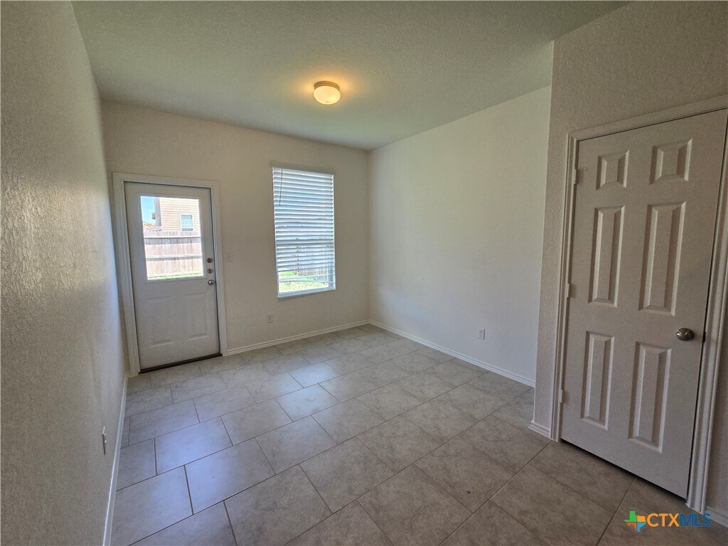 Gorgeous home at Elley Crossing in New Braunfels,TX! This immaculately maintained single-family residence boasts 3 bedrooms,2 bathrooms,and a spacious 2-car garage. Enjoy the seamless flow of ceramic tile flooring throughout the home,with plush carpeting in each bedroom for added comfort. The heart of this home lies in its open living and dining area,perfect for entertaining or cozy nights. The kitchen is a chef's delight,adorned with stunning granite countertops,a convenient center island,and a suite of stainless-steel appliances including a fridge,dishwasher,microwave,and range. Move-in ready by August 12th,this home comes with a Whirlpool washer and dryer in the indoor utility room,ensuring convenience from day one. Retreat to the generously sized master bedroom featuring a walk-in closet and unwind in the luxurious master bath boasting a double vanity and garden tub. NO PETS ALLOWED!