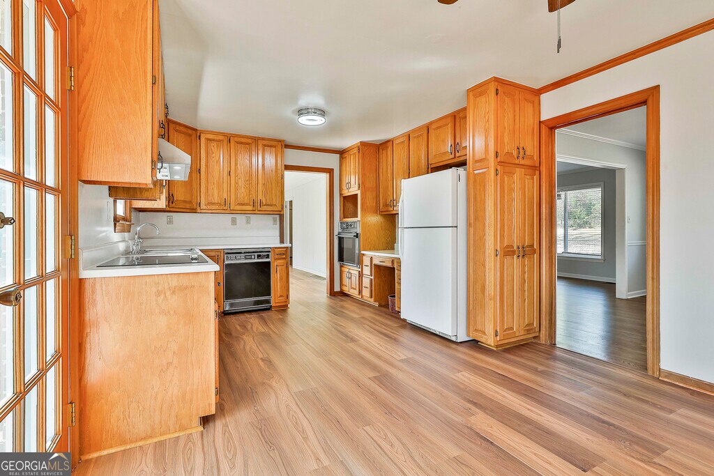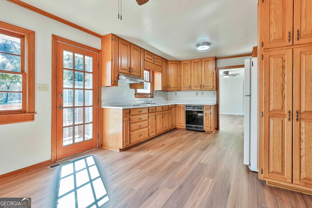 Available Now! A stunning ranch-style home located in the charming town of Fayetteville, GA. This single-story home boasts a spacious floor plan with three bedrooms and three bathrooms, including a master suite on the main level. The home has been recently renovated, featuring solid surface counters, tile floors, and hardwood floors throughout. The kitchen is equipped with a pantry for extra storage. The living room, family room, and dining room provide ample space for entertaining or relaxing. The home also includes a separate shower and tile bath for your convenience. The private backyard is fenced and features a deck with a breathtaking lake view, perfect for outdoor gatherings. Additional amenities include a carport, a laundry room, ceiling fans, central heating and cooling, and a programmable thermostat. The home also offers both gas and electric utilities, with water and sewer included. The property is surrounded by a level yard and wooded area, adding to its serene ambiance. The home also features a screened-in porch, perfect for enjoying the outdoors in any weather. The unfinished full basement, complete with a bathroom, offers potential for additional living space. Please note, no pets are allowed. Experience the comfort and convenience of 334 Porter Road, where every detail is designed with your lifestyle in mind.