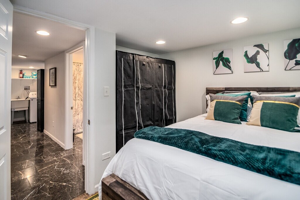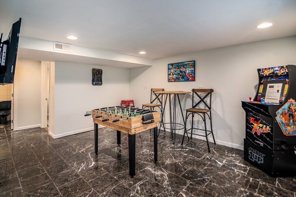 Feel at home in this renovated 2100 sq ft home located between O’Hare Airport and Oakbrook/Naperville. This property has 5 bedrooms and 2.5 bathrooms. The home was renovated in 2020 and features a modern kitchen with updated flooring and granite countertops. The arcade room features an air hockey table, an arcade cabinet with 2,000 classic games loaded, and darts. Cards and board game options are available. The kitchen is equipped with plenty of utensils, including cooking spices and oils. For entertainment, there are 6 LCD televisions, all with access to Hulu, Disney, and ESPN streaming services (English and Spanish), as well as Netflix and Prime Video access (using your own login). There is also Wi-Fi throughout the entire home, a 55" TV in the living area, 40" TVs in most bedrooms, and a sound bar in the living room. Fun and games include a football, a basketball, and 50+ board games and playing cards. For the young ones, there is a pack and play sleeper, a stroller to support your tourism activities, a highchair for a pleasant dinner time experience, and a booster seat for convenient traveling. Get to the hottest suburbs within 15 minutes from this home. If the home has a fireplace, it is not for guest use. Up to 300 MBPS internet speed is available, with an ethernet hard line. [SI]