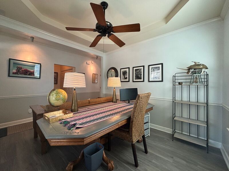 Welcome to this beautifully furnished 3-bedroom, 2.5-bath home located in the heart of Mount Pleasant. Designed for both comfort and convenience, this home features 9-foot smooth ceilings, custom molding throughout, and abundant natural light that creates a warm, inviting atmosphere. Enjoy your mornings or evenings on the enclosed sun porch overlooking a shaded, fenced-in backyard—perfect for relaxing or entertaining. Residents also benefit from access to outstanding community amenities, including a pool, clubhouse, fitness center, tennis courts, and scenic walking trails. Ideally located near the town center and just minutes from the beach, this home offers the perfect Lowcountry lifestyle. Lawn maintenance is included, allowing you to enjoy everything Mount Pleasant has to offer with ease. Property Highlights Fully furnished 3 bedrooms / 2.5 bathrooms Enclosed sun porch Fenced backyard Community pool & fitness center Tennis & pickleball courts Walking & jogging trails Lawn care included RV / boat storage available Amenities: community pool, community tennis court, fitness center, off-street parking, fenced backyard, enclosed sun porch, rv / boat storage, high ceilings and custom interior details