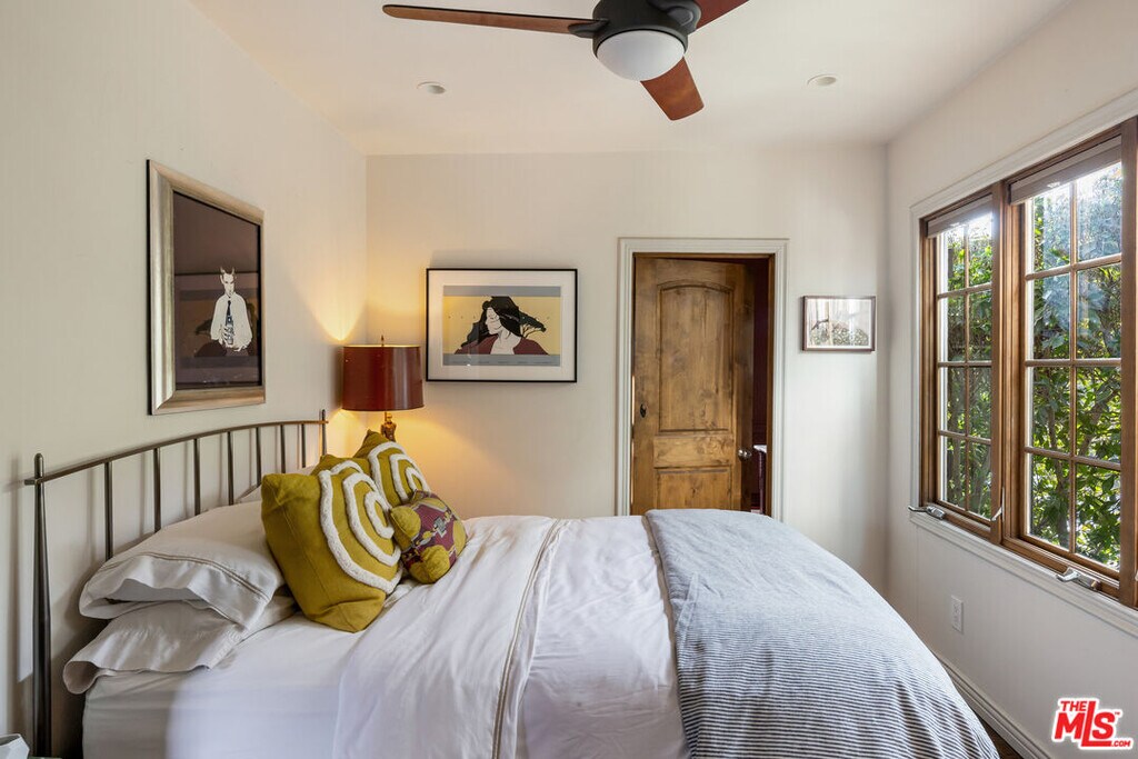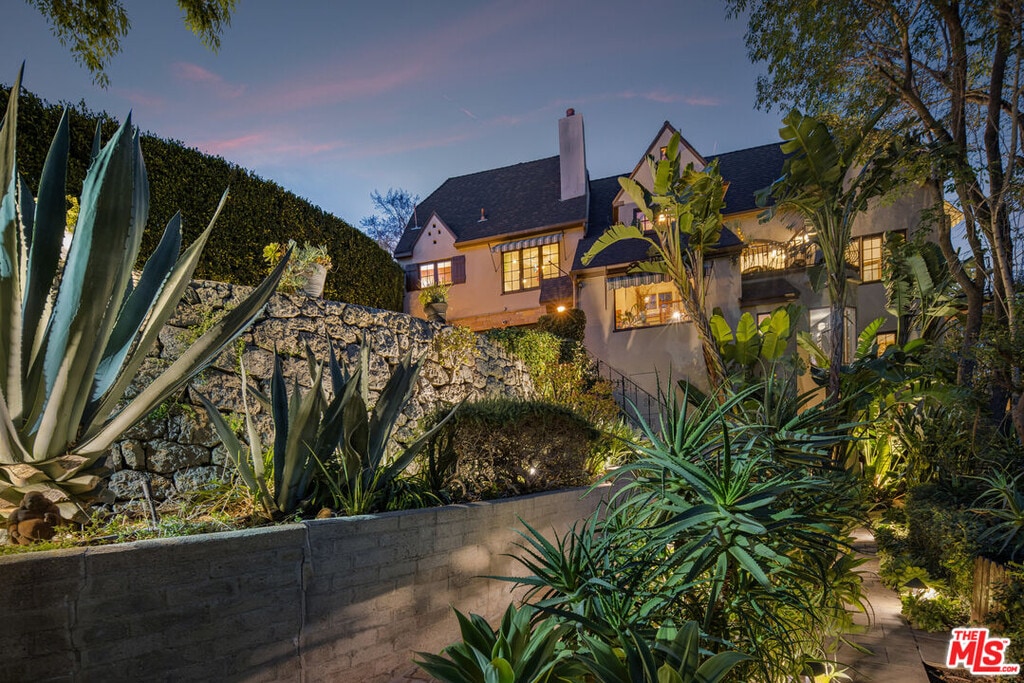 Peacefully tucked amidst the treetops of Beachwood Canyon, this fully furnished 1920s French Normandy chateau is a luxurious retreat where Old Hollywood charm meets modern sophistication! With breathtaking views of the Hollywood Sign, Griffith Observatory, and the iconic Los Angeles skyline, this secluded oasis offers an unparalleled experience in the Hollywood Hills. Step through the arched entryway and be transported to a world of elegance, exquisite walnut millwork, soaring truss ceilings, and abundant windows that bathe the home in natural light. Cathedral ceilings tower over the living room's stone fireplace and scenic French doors, opening to a picturesque deck that sets the stage for unforgettable evenings under the stars. A designer chandelier lends a relaxing mood for intimate gatherings in the dining area. Crafted for the avid cook, the gorgeous kitchen features premium appliances, custom cabinetry, a distinctive backsplash, and gleaming marble countertops. Three generous bedrooms invite you to unwind after a long day, the grandest of which is the primary suite with its exclusive balcony, walk-in closet, and opulent ensuite. Multi-level outdoor seating areas, a covered fitness alcove, and lush greenery make this home an entertainer's dream. Notables include the versatile loft with a separate entry, kitchenette, and a long, gated driveway offering ample parking. Its elevated location makes this sanctuary feel remote despite being only moments from the heart of LA. The house is offered fully furnished MLS# 26647821