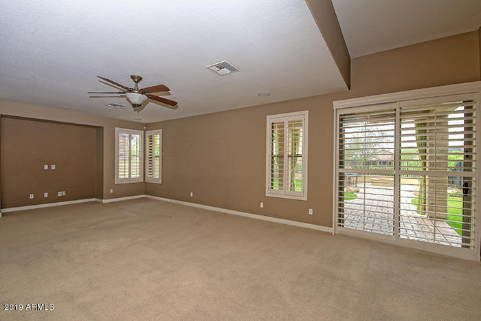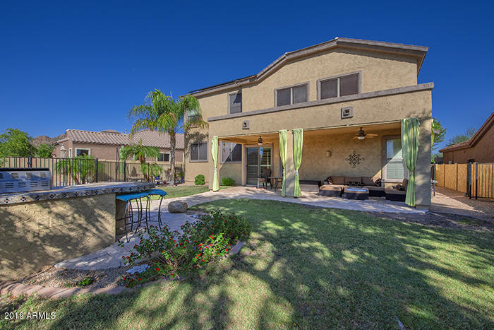 Lifestyle is Included with this spectacular Family Home. 4 Bedroom/3 Bathroom + Den + huge Bonus Room.. Interior upgrades include a Granite Slab Kitchen w/Full Backsplash,Stainless Gourmet Appliances,Double Ovens,42'',Cherry Cabinets,Plantation Shutters. Garage Extension,Home Theater Pre-wire,Side Garage Service Door,Dual AC w/Gas Heat. Formal Living Room beautiful Fireplace. Downstairs Den (yes doors/no closet) w/Full Bathroom. Luxury Resort lifestyle outdoors on your patio overlooking the natural Desert Wash. Grassy Play Yard,Built In BBQ,Pavers Extended Patio,Fire-pit,Sparkling Pebble Tech Fenced Swimming Pool w/SPA,Additional Extended Patio in pool area. Location,Location,Location.