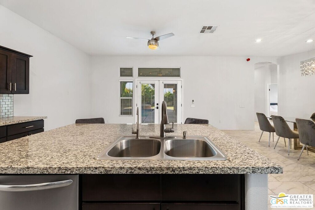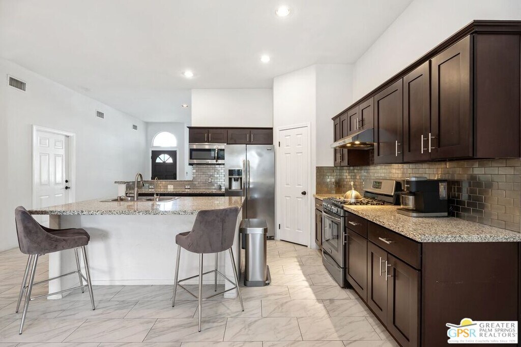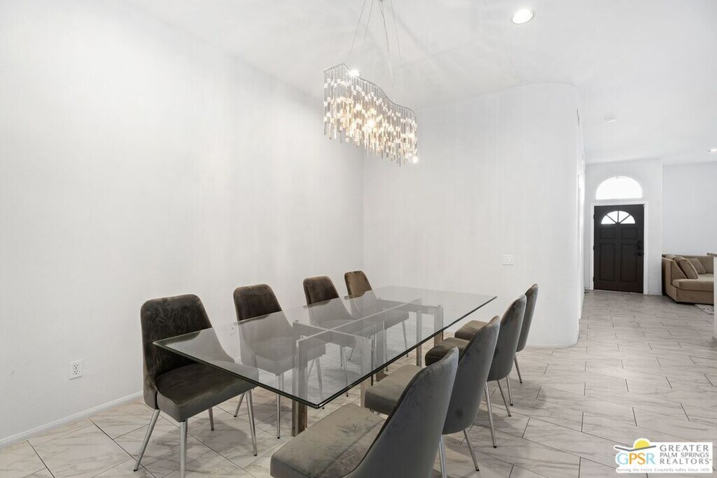 Welcome to Shifting Sands Trail Delight! Applications should be submitted via RentSpree. This stunning, completely remodeled pool home is your ultimate Desert Oasis. Boasting breathtaking mountain views, this property offers a serene and luxurious retreat. The kitchen comes equipped with high-end stainless steel appliances, sleek cabinetry, and granite countertops. The open concept flows seamlessly into the living and family rooms, which feature soaring high ceilings. Carrera-style tile flows through most of the home, with soft carpeting in the bedrooms for added comfort. The spacious home features 4 large bedrooms, 2 baths. The walk-in closets provide ample storage, and the entire home has been tastefully remodeled to offer modern elegance throughout. The expansive backyard is an oasis in itself, with fruit trees and lush, landscaped lawns. Stucco fence enclosing the backyard, providing complete seclusion. This home also comes with a state-of-the-art AC system, and energy-efficient LED lighting throughout. The dining room is highlighted by a beautiful modern chandelier, adding to the home's sophisticated design. Need extra parking space? Two additional parking spots on the driveway. There's plenty of room to park an RV. This home truly embodies a tranquil desert escape, combining luxury, convenience, and relaxation. Tenants are responsible for utilities, electric, gas, water, including the solar lease (an additional $150 a month to Landlord). and renter's insurance. Landlord pays for Pool and Gardener service. Photos from previous lease. A must-see! MLS# 26650523PS