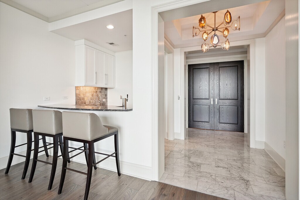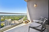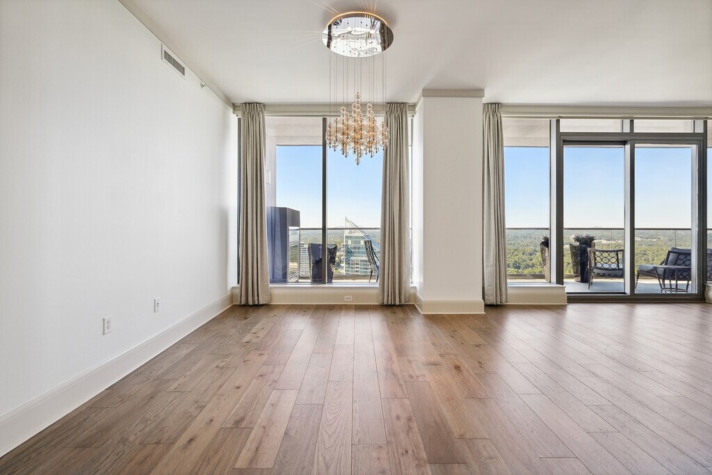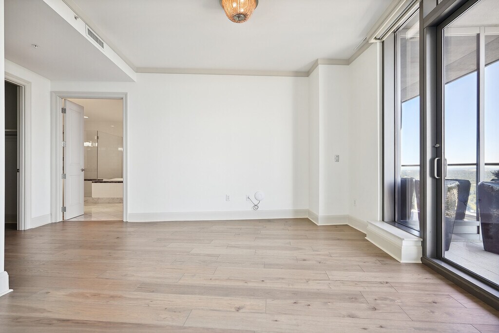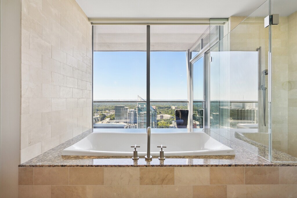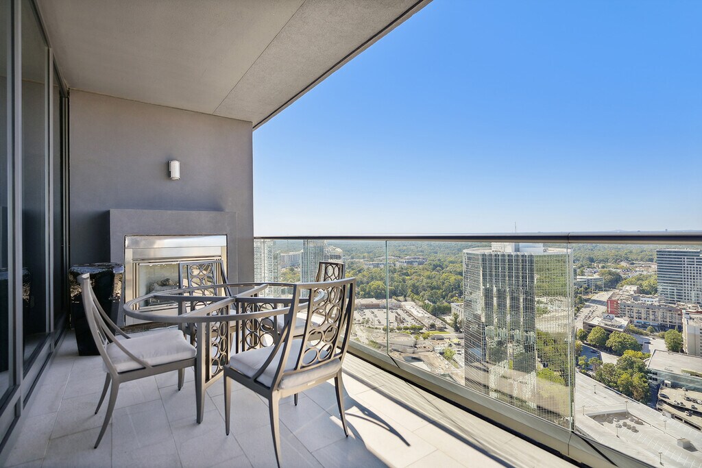 Unique luxury home in the sky at Sovereign, where rental opportunities are exceptionally rare. This residence is truly one-of-a-kind, featuring three private balconies and sweeping views that stretch from the Atlanta skyline to the North Georgia Mountains. The spacious floor plan opens to an elegant foyer with a large bar area, complete with a draft beer tap—perfect for entertaining. The kitchen flows seamlessly into the dining and living areas and showcases a large island, Sub-Zero refrigerator, and Wolf appliances. A dramatic wall of windows leads to an outdoor living terrace with a fireplace and gas grill, offering breathtaking views from every room. To the left of the kitchen and main salon, you’ll find a powder room and a generous secondary suite with a massive marble bath and its own private balcony. To the right, a dedicated office provides an ideal work-from-home space. The primary suite is expansive, featuring incredible windows, a private terrace, a custom designer closet, and a luxurious marble bath with a jetted tub, multi-head shower, heated towel rack, and dual vanities. Motorized sunshades are installed throughout the home for added comfort and convenience. Sovereign has recently completed a major renovation, including stunning glass balcony railings and beautifully updated interior hallways, giving the building a fresh, modern feel. Residents enjoy direct access to The Buckhead Club, Bistro Nikko, and a variety of dining and nightlife options. With world-class shopping and MARTA just steps away, this location is ideal for those seeking both luxury and convenience in the heart of Buckhead. Each applicant must provide financials, employment, and residential history. Includes three covered parking spaces.