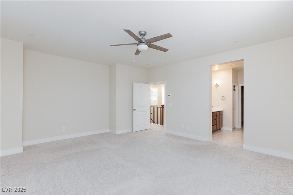 Welcome to this stunning 2400+ sq ft home designed for comfort and modern living. Featuring 4 bedrooms, 3 baths, and an open airy floor plan, this home is perfect for entertaining or relaxing with family. Enjoy a chef-inspired kitchen with granite countertops, a breakfast bar, and stainless steel appliances. The large sliding patio door opens to a beautifully upgraded covered patio and landscaped backyard, ideal for outdoor dining, weekend gatherings, or quiet evenings. The home includes a convenient downstairs room with a full bath, perfect for guests or a private home office. The primary suite offers a touch of luxury with dual sinks, a soaking tub, a separate shower, and a spacious walk-in closet.The home also includes solar panels for energy savings and efficiency.Located in the master-planned Inspirada community, residents enjoy access to parks, playgrounds, pools, walking trails, and top-rated nearby schools.