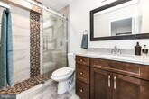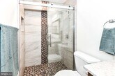 Rarely available in the sought-after Dominion Square community—this fully renovated 3-bedroom, 3.5-bath townhome is move-in ready and brimming with modern upgrades. Step inside to discover a brand-new kitchen with sleek cabinetry, quartz counters, and stainless steel appliances, complemented by all-new flooring throughout. Each bathroom has been stylishly remodeled, offering spa-like finishes and fresh functionality. The open-concept main level is bathed in natural light from oversized bay windows, perfect for both everyday living and entertaining. Upstairs, two spacious bedrooms each enjoy private en suite access, while the fully finished lower level adds a versatile third bedroom, full bath, and secondary living space that opens directly to the outdoors. Enjoy your private, fenced backyard retreat featuring a new slate patio, tall privacy fencing, and convenient rear-gate access that leads you straight to a charming neighborhood restaurant. Assigned parking is located right out front, plus residents benefit from access to the Dominion Apartment complex pool, gym, and a large community green space just across the street. With easy access to Ballston, Columbia Pike, Metro, parks, restaurants, and shopping—this home offers the perfect blend of style, comfort, and convenience in the heart of Arlington!