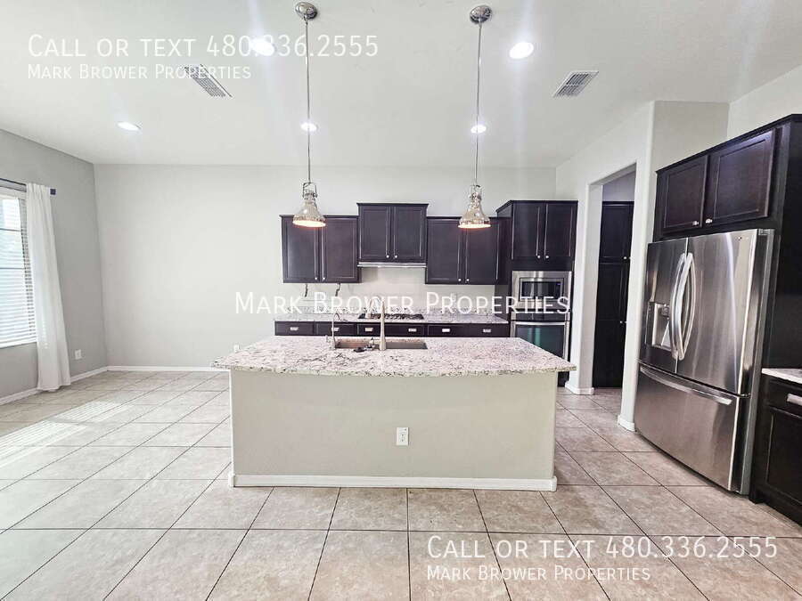 Experience the pinnacle of Gilbert living in this stunning, expansive residence located in the highly coveted master-planned community, The Bridges. Boasting over 4,300 square feet of thoughtfully designed living space, this 6-bedroom, 4.5-bathroom home offers a unique layout perfect for multi-generational living or a high-end home office setup. The total bedroom count includes a private casita, ideal for guests, extended family, or a dedicated home office This residence features a bright, open-concept floor plan featuring modern tile flooring throughout the main level. The gourmet kitchen is a chef’s dream, equipped with sleek granite countertops, stainless steel appliances, a massive center island, and a walk-in pantry with custom built-ins. The primary suite is conveniently located on the ground floor, offering a spa-like retreat with double vanities, a soaking tub, and a spacious walk-in shower. Step outside to a private, low-maintenance backyard—perfect for quiet mornings, evening relaxation, or intimate gatherings. Every detail of this home reflects quality, care, and effortless living. Located just minutes from upscale shopping, dining, parks, top-rated schools, and convenient freeway access, this home delivers both luxury and lifestyle. *Pets allowed - up to 2 pets Other leasing fees: $50 Solar monthly fee $50 per adult application fee $200 admin fee upon lease signing $30 pet application fees - $25 if paid via ACH (if applicable) 2% monthly admin fee $300 non refundable pet fee- per pet (if applicable) Security deposit equal to one month's rent (interested in paying $0 security deposit? Ask us about our alternative Security Options) Renters insurance required To satisfy the insurance requirement, Tenant may either (1) be automatically enrolled into a policy that satisfies the coverage requirements for $10.95/month; or (2) obtain alternative liability coverage from an insurer of Tenant's choice. The option Tenant chooses will not affect whether Tenant's lease application is approved or the terms of Tenant's Lease.Biking & Walking Path