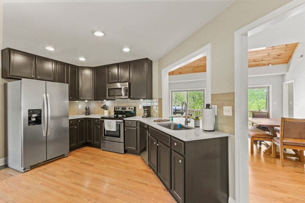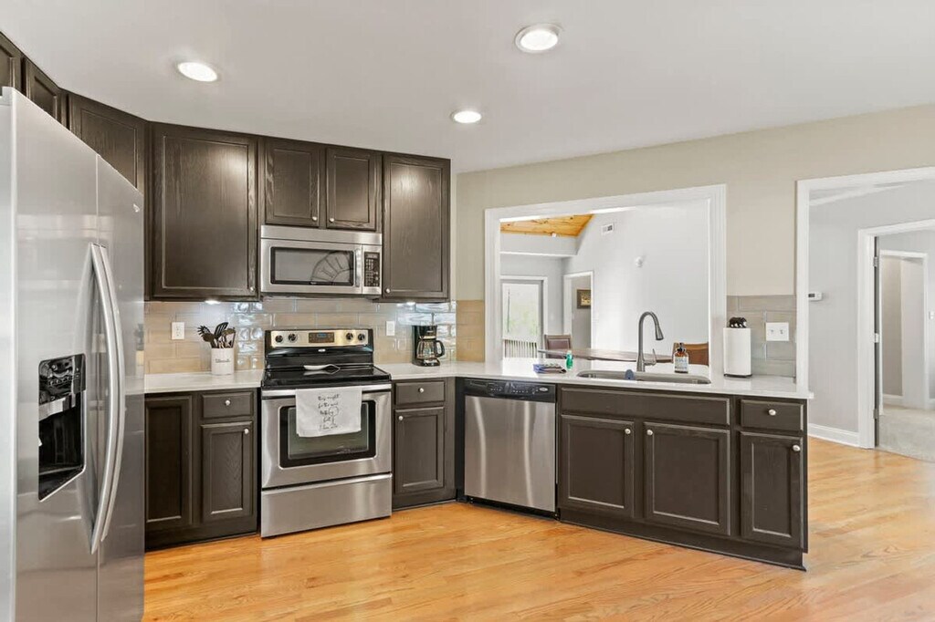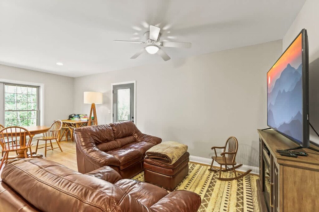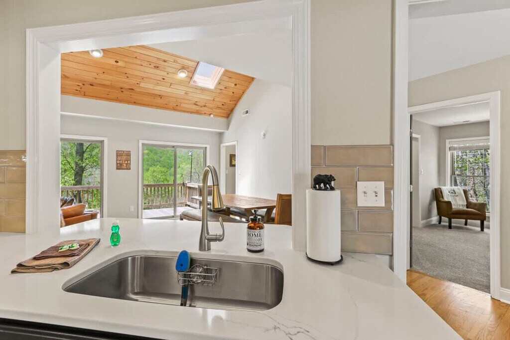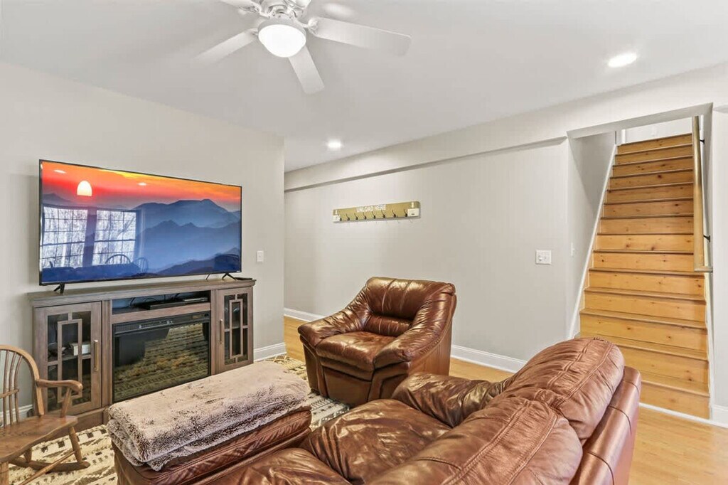 Welcome to this gorgeous newly renovated home in Beech Mountain, perfect for a large family getaway. This two-story cabin offers a spacious open-plan living area with modern amenities, two living areas, and a game room for entertainment. With four comfortable bedrooms, each with private bathrooms, and stunning mountain views from multiple decks, you'll feel at home in this beautiful setting. Step into this fairy tale cabin where immaculate open space meets modern comfort. The cozy open-plan living area is designed with numerous modern amenities, including a fully equipped kitchen and an inviting dining area that opens onto an attractive living room. Upstairs, the living room features comfy couches, a cozy fireplace, and access to the outdoor deck. Downstairs, enjoy a gaming area with shuffleboard and air hockey. The kitchen is a chef's dream, complete with a microwave, stove, oven, refrigerator/freezer, coffee maker, dishwasher, and all necessary cookware and utensils. The large dining area is perfect for home-cooked meals, with seating for up to 11 guests. Beech Mountain Club access is available for a $300 transfer fee. Bring your fur baby with you, limited to one dog under 50 lbs with a $150 pet fee. Early check-in and late check-out are subject to availability with a $25 per hour fee. The cabin is situated in the small vacation town of Beech Mountain, NC, offering a remote location with small-town charm. Enjoy nearby woodsy trails and a short drive to Lake Coffey for additional trails. The area provides plenty of attractions, including skiing, snowboarding, snow tubing, zip-lining, mountain biking, off-road ATVs, rafting, fly fishing, hiking, golf, fine dining, and shopping. Both Beech Mountain and Banner Elk offer these activities at your fingertips. Smoking is not allowed on the property. There is a security camera on the front door and in the driveway. Pets are not allowed. People other than those in the guest's party designated in the reservation may not stay overnight at the property. Keep the property and all furnishings in good order and only use appliances for their intended uses. There is no daily housekeeping service, and while linens are included, daily maid service is not included in the rental rate. [SI]