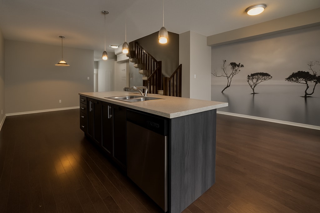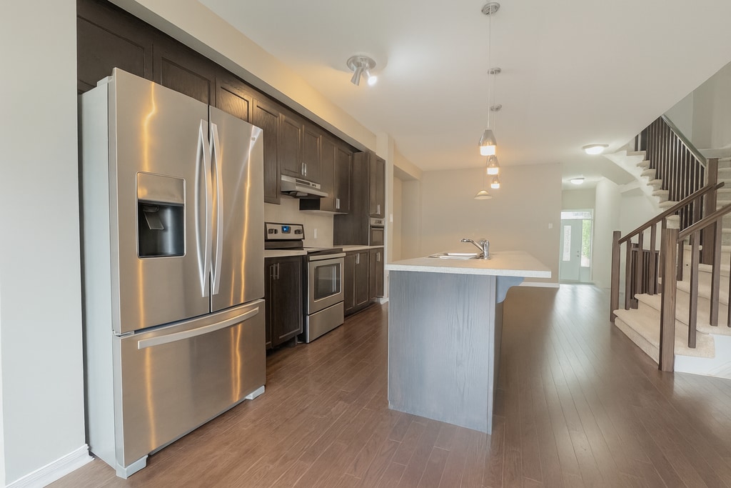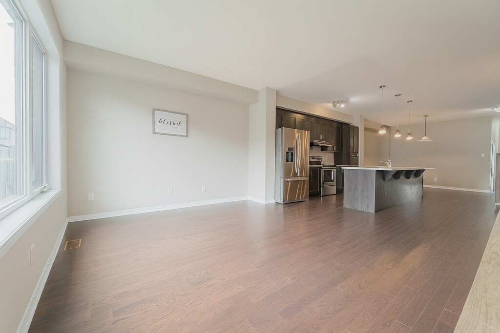 Discover your new home in the vibrant community of Blackstone! This spacious townhome boasts over 2,200 sq ft of living space, featuring an open concept main floor with high ceilings and beautiful hardwood flooring. Enjoy a well-appointed kitchen with a large pantry, flowing seamlessly into the bright dining and living areas adorned with oversized windows. The second floor offers a tranquil primary bedroom with a luxurious 5-piece ensuite and a generous walk-in closet, along with two additional bedrooms, a versatile den perfect for a TV room or office, and a laundry room. The finished lower level provides a cozy family room, ideal for play or games, with extra storage in the unfinished area. Outside, the fully fenced oversized yard features a gas BBQ hookup, perfect for entertaining. Conveniently located near schools, shopping, restaurants, and parks, this townhome is the perfect blend of comfort and community. Don't miss out on this incredible rental opportunity!