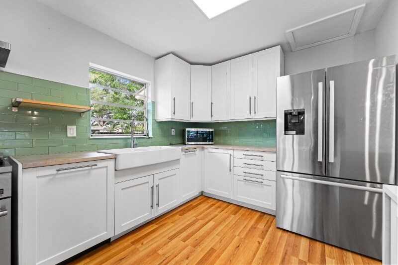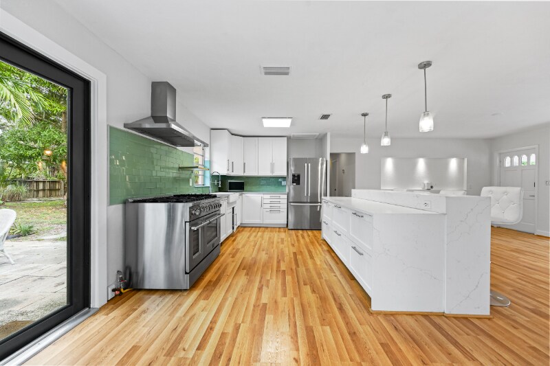 Property Id: 1546669 Welcome to your beautifully updated, unfurnished oasis nestled on nearly half an acre of lush tropical landscaping. This spacious home is surrounded by mature fruit and palm trees. Step inside to an open-concept layout, a sun-drenched living and dining area illuminated by floor-to-ceiling windows — perfect for entertaining. The kitchen features a chef's kitchen with sleek quartz countertops, stainless steel appliances, and a massive 8-burner, dual-oven gas stove. A Bosch refrigerator and other premium appliances complete the space. The home features a spacious laundry room with a sink and cabinets. The hurricane-impact double doors lead to a private fenced backyard, so whether you're hosting indoors or enjoying the outdoors, this home is designed to make the most of South Florida's beautiful weather and vibrant lifestyle. Mid-term, furnished is offered for $4850 with utilities inc. Not included in this listing is the attached occupied apartment, carport with a private entrance.