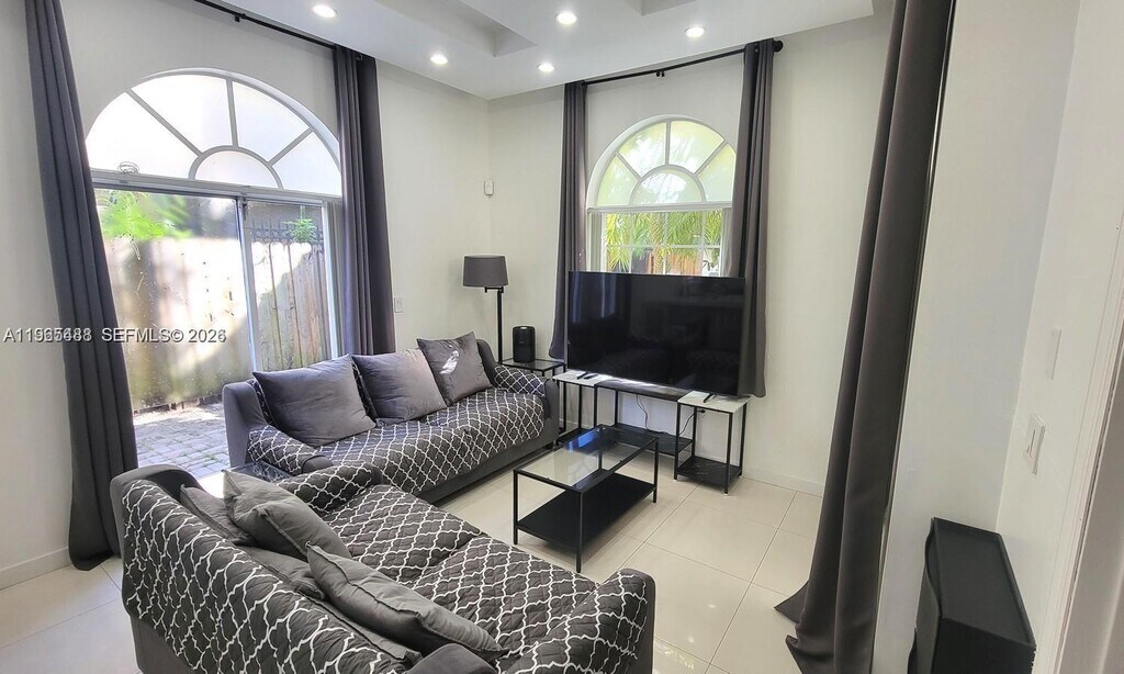 Light and bright, Coco Ibiza Villas a Coconut Grove gated community featuring a tastefully furnished 1 bedroom, 1 bathroom first floor corner unit with soaring ceilings, porcelain tile throughout, gourmet kitchen with Corian countertops, stainless steel appliances and breakfast bar, Master bedroom with walk in closet/California Closets, full size washer and dryer, sliding glass doors leading to a fenced patio with brick pavers and a community swimming pool. Rent includes water, no pets or smoking. Furnished only, no pets. Landlord requires good credit and employment verification. MLS # A11965488